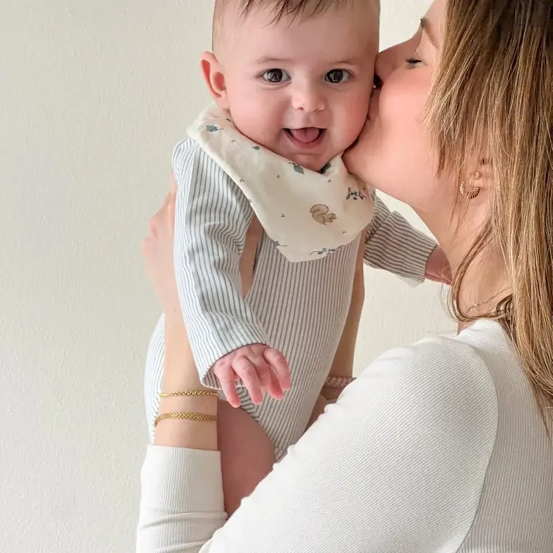 Многие мамы начинают использовать нагрудники только с введением прикорма. И потом искренне жалеют, что не надевали их с первых дней — особенно если малыш активно срыгивает. Мягкий нагрудник из джерси сидит как часть одежды, не натирает шею, легко стирается. Берите сразу несколько штук — они пачкаются с завидной регулярностью, и хорошо, когда в ящике есть запас.