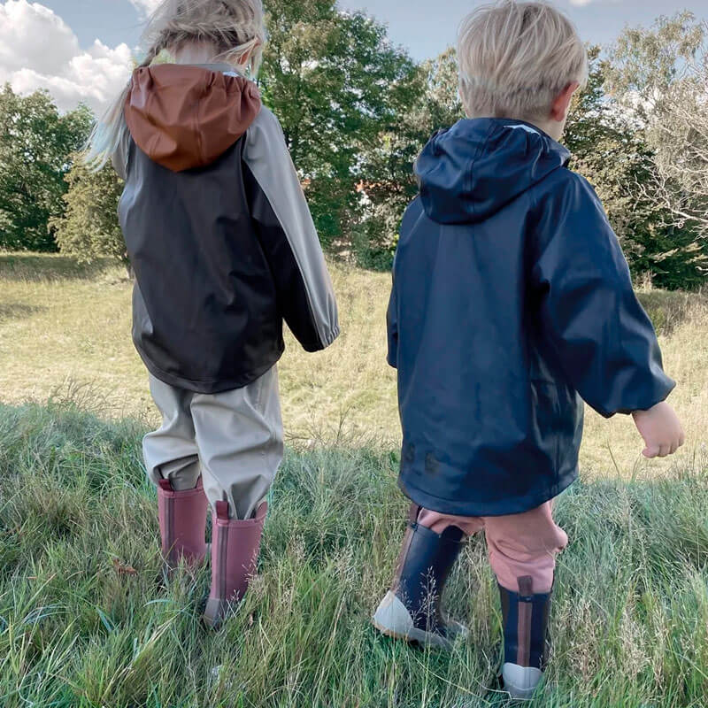 Классика скандинавского дождевика. Обычно ткань довольно плотная, с хорошей пропиткой и проклеенными швами. Стирается терпеливо, но сохнет чуть дольше. Если ухаживать правильно, может перейти братику или сестричке.