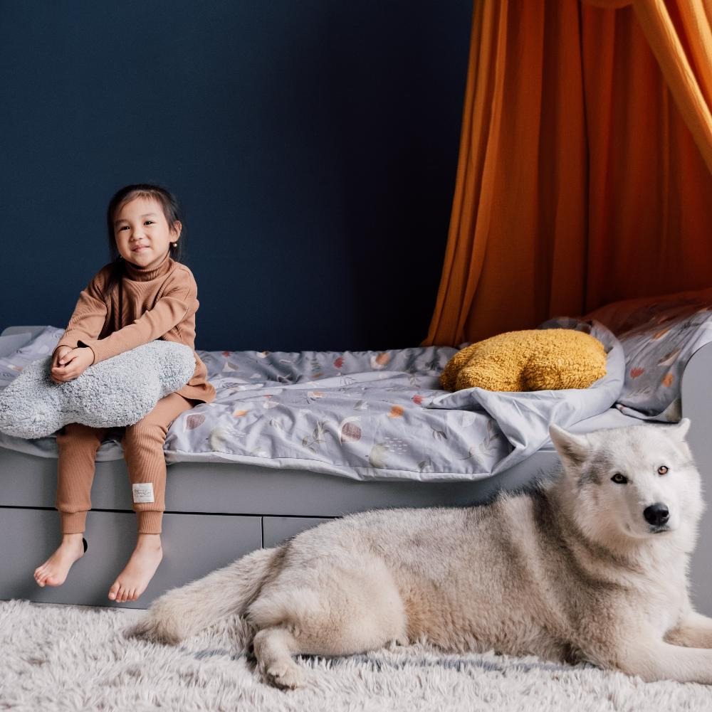 Комплекты постельного белья — это про целостность. Они словно создают рамки уюта, в которых всё сочетается: и пододеяльник, и простыня, и наволочка. Это важнее, чем кажется. Для ребёнка такие детали формируют ощущение порядка и комфорта. Мир вокруг может быть полон открытий, непредсказуем и шумен, но кровать всегда остаётся неизменной. В ней всё на своих местах. Одинаковый рисунок, мягкая ткань, знакомое прикосновение. Каждую ночь — как возвращение в маленький, но надёжный мир.