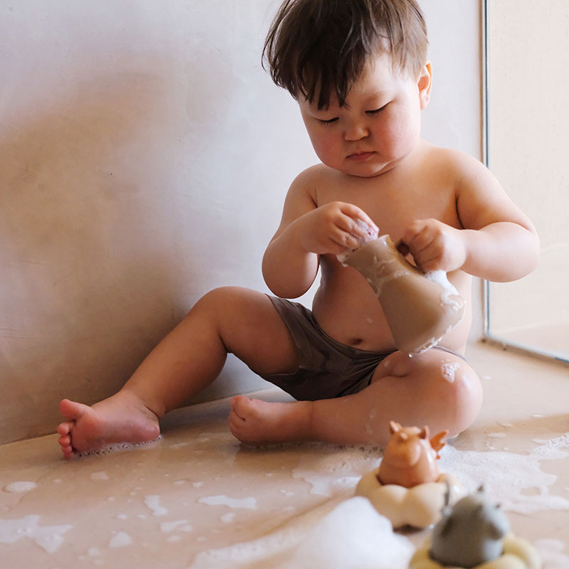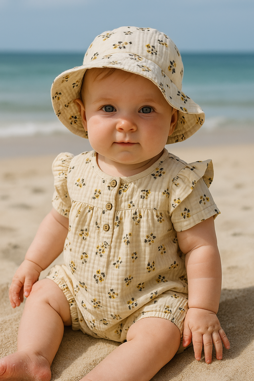 Во-первых, одежда. Тут принцип один: меньше и легче. Муслин — ткань номер один в жару. Он тонкий, воздушный, отлично дышит. Даже если малыш вспотеет — ткань быстро высохнет, и никаких раздражений. А если вдруг вздумаете выйти на улицу в час пик (мы не осуждаем), то стоит подумать и о защите от солнца посерьёзнее. Современные купальники и плавки с SPF-защитой — настоящее спасение. Особенно если ребёнок любит плескаться в воде дольше, чем действует крем от солнца. Одел один раз — и можно не беспокоиться о повторном нанесении.