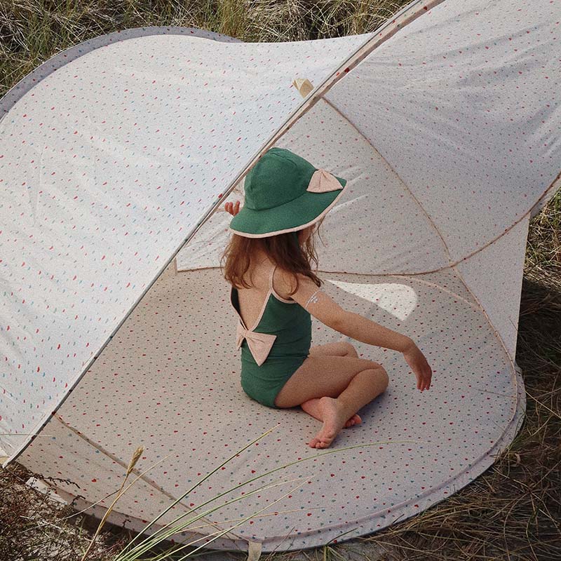 И вот вы решились на большой выезд — например, к озеру или на пляж. Там жара бывает особенно беспощадной. Чтобы не бегать в поисках тени и не сооружать шалаш из полотенец и колясок, возьмите с собой пляжную палатку. Она лёгкая, собирается за минуту, а внутри — прохладно, уютно, можно полежать, поиграть или даже вздремнуть. Особенно если туда кинуть парочку любимых игрушек и бутылочку с водой. А ещё такие палатки защищают от ветра и песка — а значит, меньше шансов найти песок в подгузнике или трусиках.