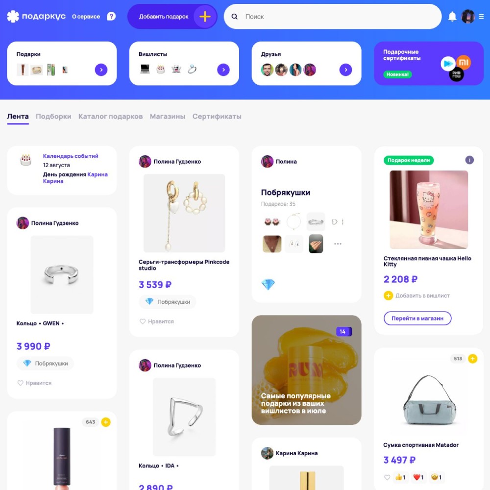 - Внешне интерфейс напоминает интернет-магазин, где представлены самые популярные идеи для подарков на данный момент.