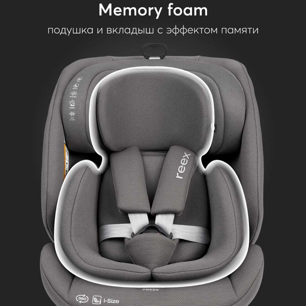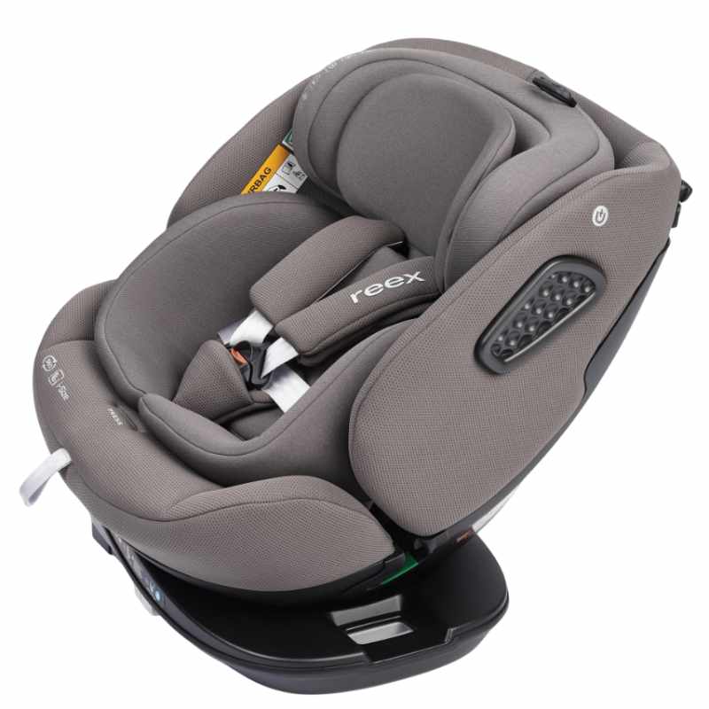 Reex в графитовом исполнении — современно и стильно, идеально подходит семьям, любит минимализм. Он поворачивается к дверце, чтобы посадить малыша без усилий, мягко удерживает, а боковая защита внушает спокойствие. Цвет спокойный, стиль — в вашем автомобиле, а малыш в безопасности.