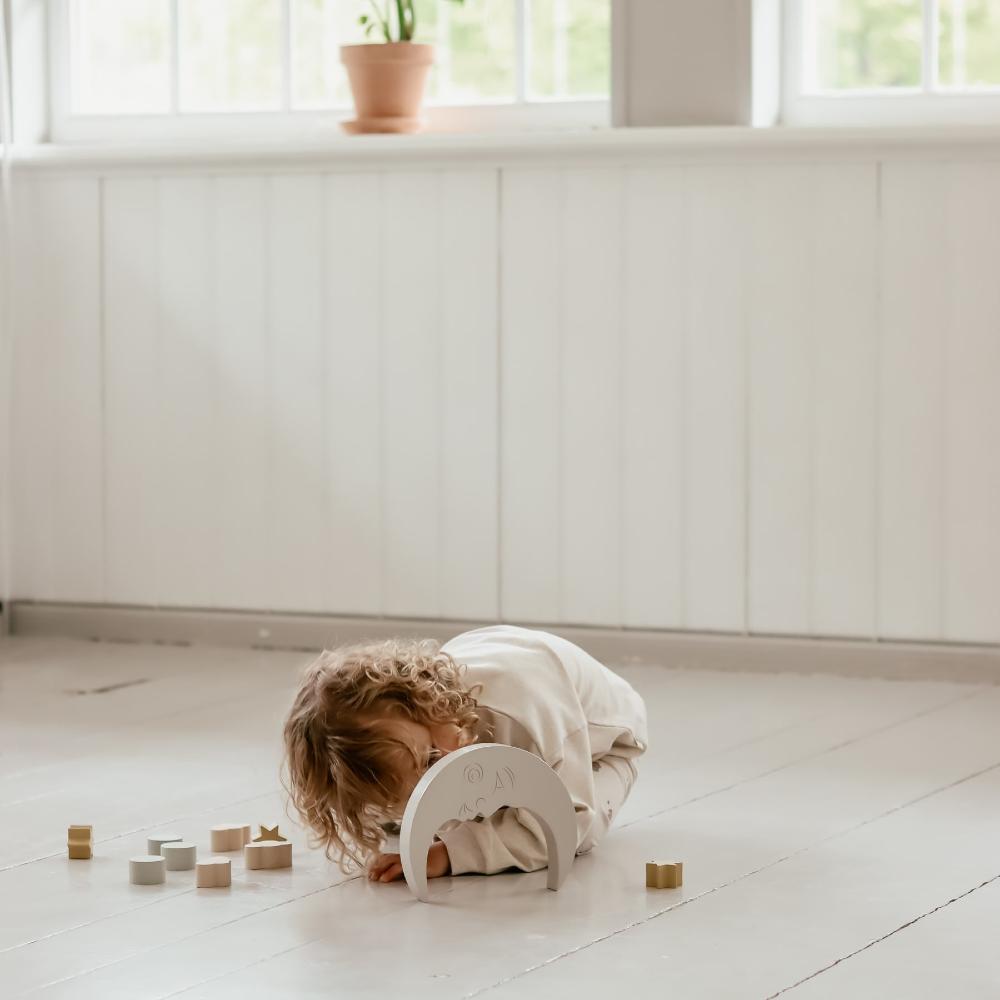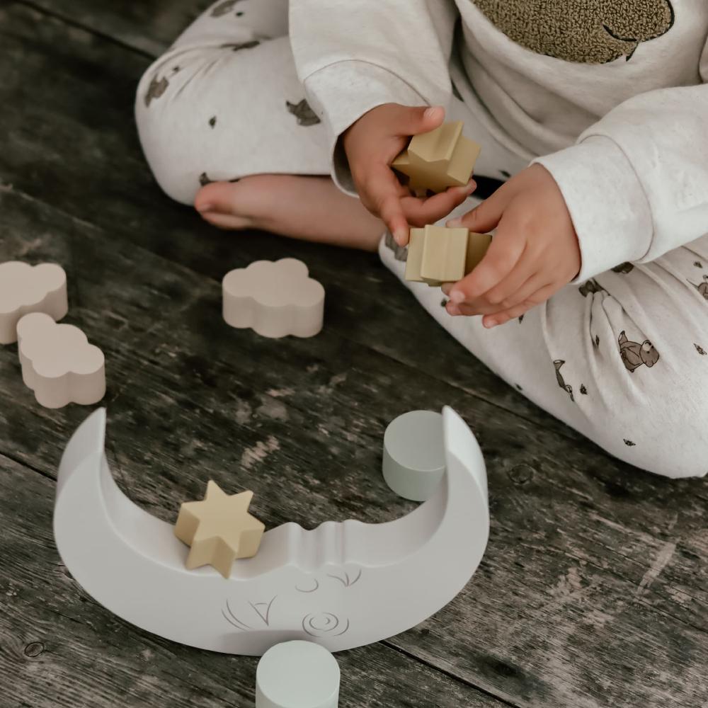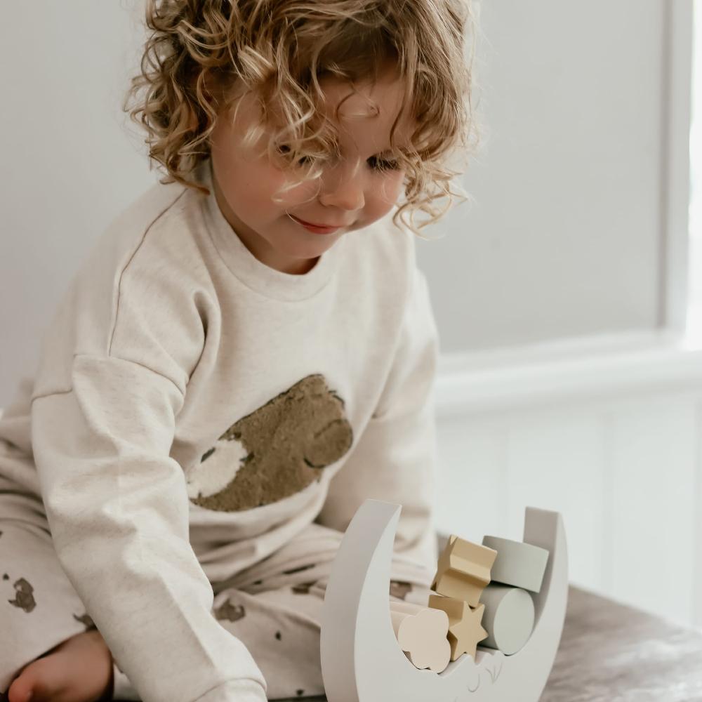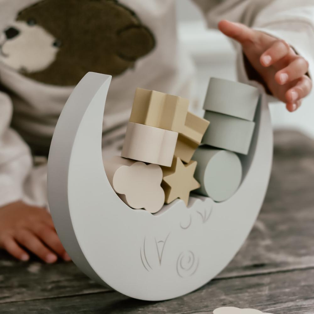 Игра, в которой важно не спешить и чувствовать равновесие. Полукруглая основа и небольшие фигурные элементы превращают процесс в спокойное занятие, где каждый новый элемент меняет результат. Ребёнок пробует, ищет своё решение и радуется, когда всё держится на месте. Такой формат помогает развивать внимание и усидчивость, оставаясь частью уютных игр дома.