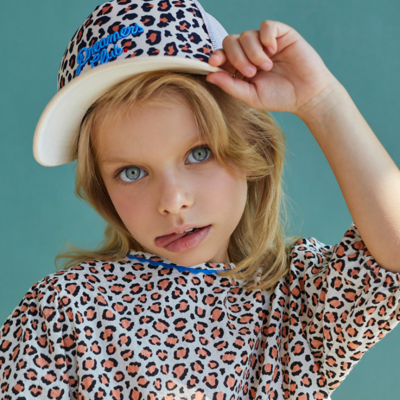 Бейсболка с оригинальным принтом "клуб мечтателей" станет отличным аксессуаром для детей любого возраста. Удобный регулируемый размер и мягкая ткань обеспечат комфорт при носке, а стильный дизайн с леопардовыми полосками придаст образу оригинальности. Прекрасный выбор для прогулок и активных игр на свежем воздухе, который защитит от солнечных лучей и придаст индивидуальности.