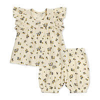 Нежная блузка с авторским принтом в виде маленьких веточек мимозы выглядит оригинально и стильно. Отрезная по груди кокетка и свободный крой рукава не стесняют движений малышки. Удобная застежка позволяет быстро надеть и снять блузку, органический хлопок очень приятен на ощупь и не раздражает кожу. Блузка хорошо сочетается с юбочками или брючками, подойдет для прогулок или игр дома.
