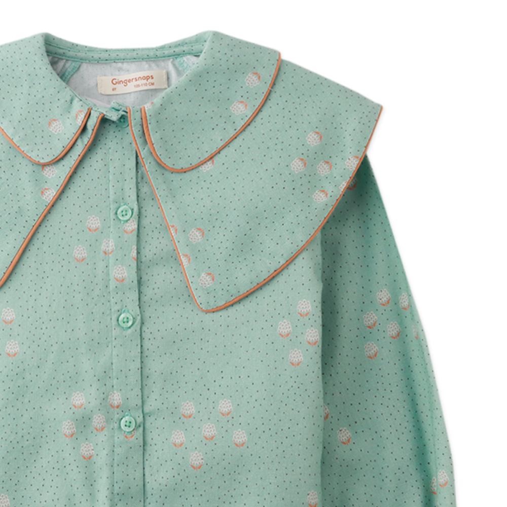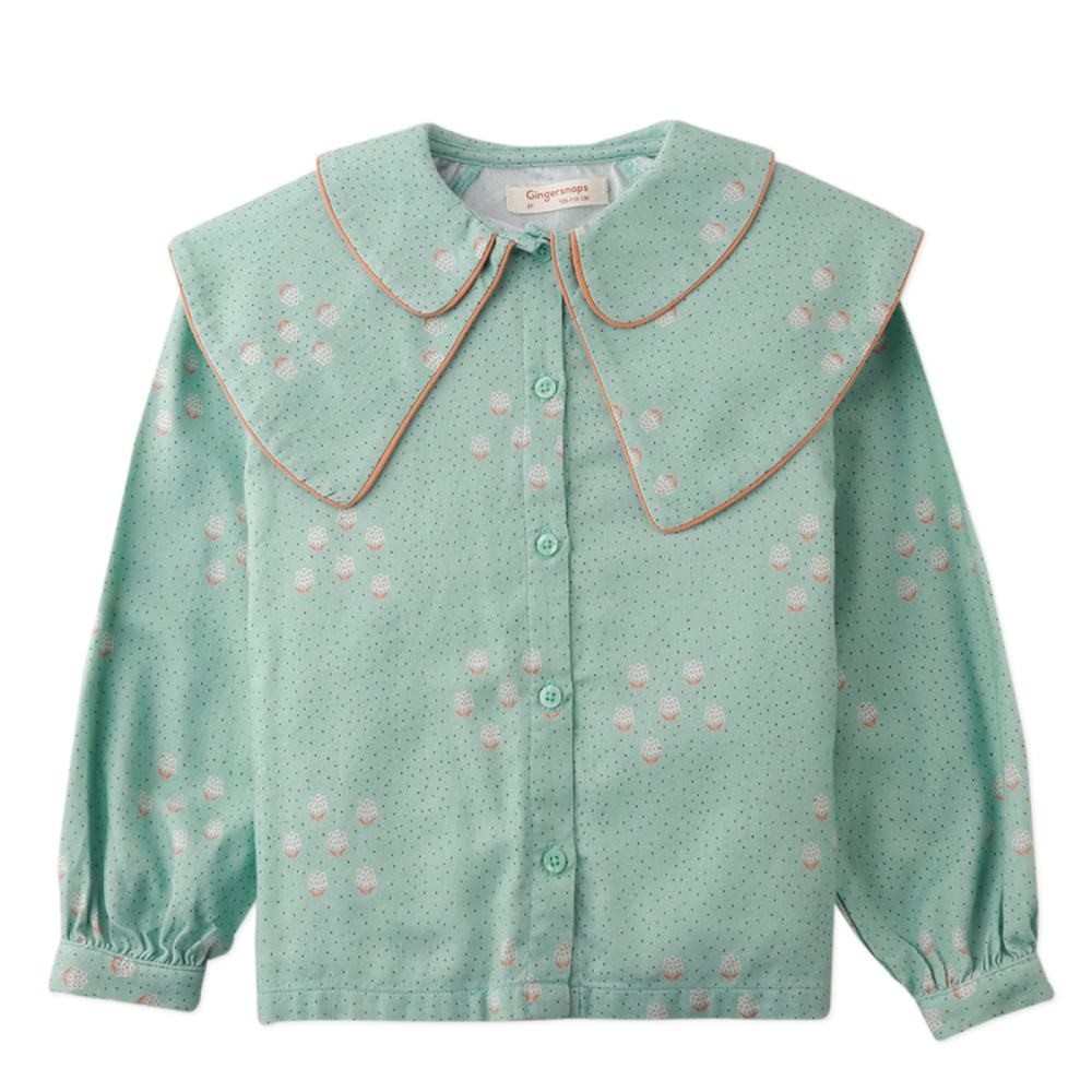 Блузка Gingersnaps "Charlize Mint Grove" — нежный мятный топ с дизайнерскими деталями для создания уникального образа. Модель с длинными рукавами украшена стильным воротником с контрастной отделкой. Идеальный выбор для праздников, фотосессий или создания стильного повседневного образа.