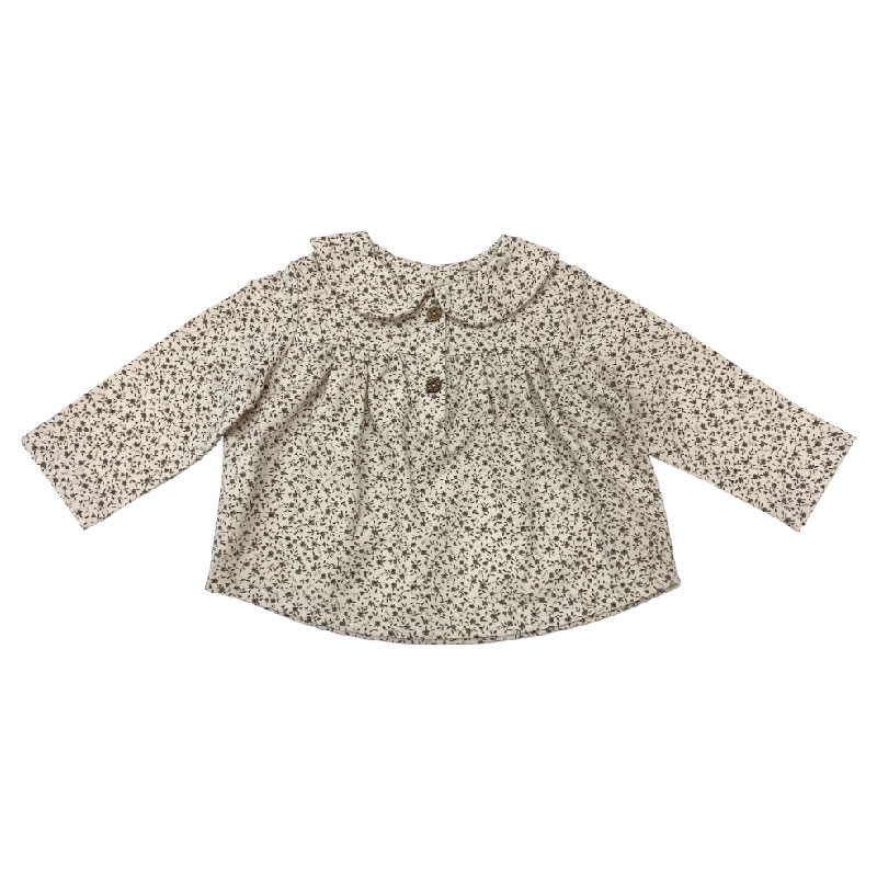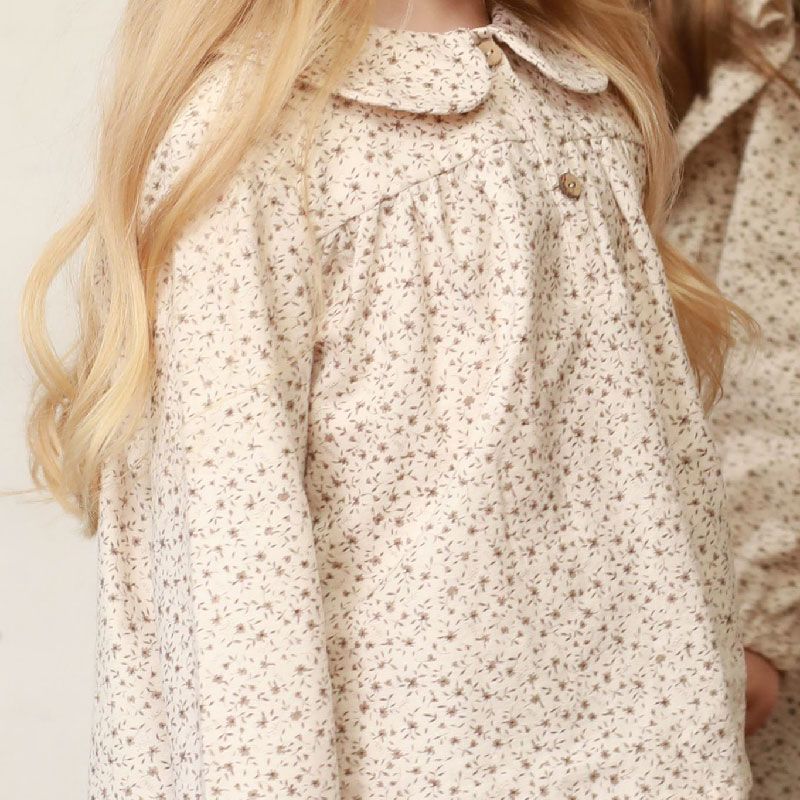 Нежная блузка в молочном оттенке украшена мелким цветочным принтом, создающим романтичное настроение. Модель выполнена из мягкой и приятной на ощупь ткани, в которой ребёнку будет комфортно и в движении, и в покое. Свободный крой не сковывает, а аккуратные детали делают вещь подходящей и для повседневных прогулок, и для особенных дней. Эта блузка легко сочетается с брюками, юбками или сарафанами, придавая образу лёгкость и изящество.