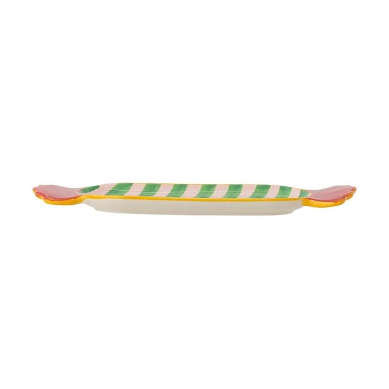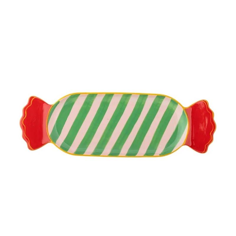 Керамическое блюдо с росписью в зелёных тонах из серии Caramella. Узор нанесён вручную, поэтому каждое блюдо немного отличается от другого. Подходит для подачи закусок, фруктов или как самостоятельный декоративный элемент. Зелёный цвет освежает традиционную рождественскую палитру. Керамогранит прочен и долговечен.
