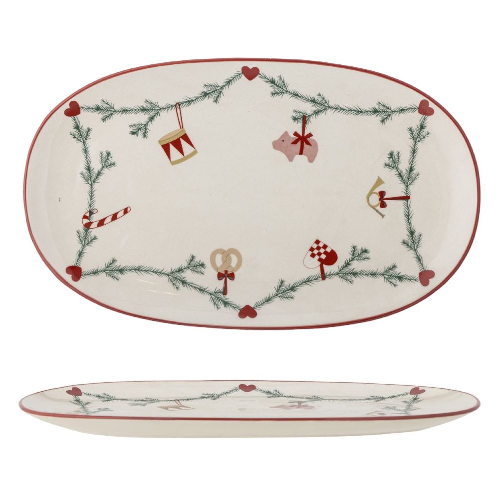Сервировочное блюдо Yule с молочным оттенком и красными акцентами — для тех, кто любит красиво подавать еду. Керамика с рождественскими узорами создаёт настроение, но не перегружает стол. Подходит для печенья, фруктов, закусок или даже для декоративной композиции со свечами. Форма удобная, размер достаточный для компании. Можно сочетать с другими предметами коллекции Yule или использовать отдельно — блюдо самодостаточно.