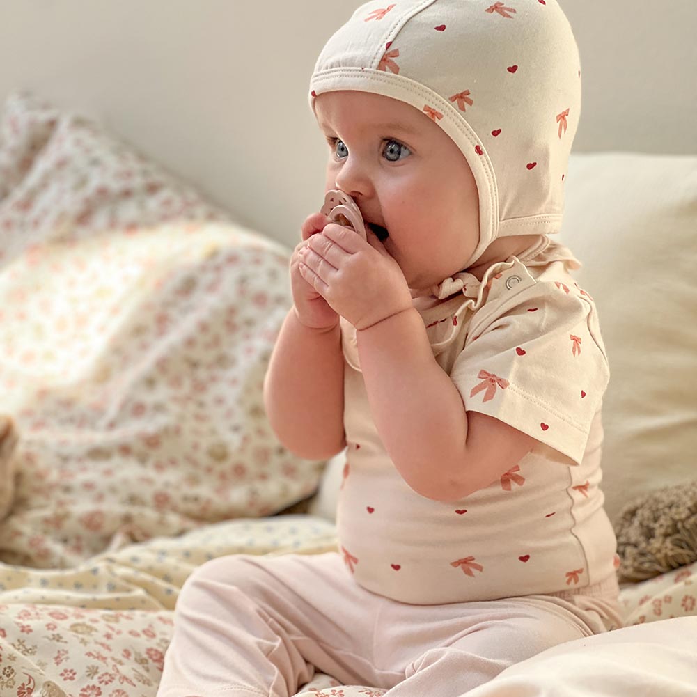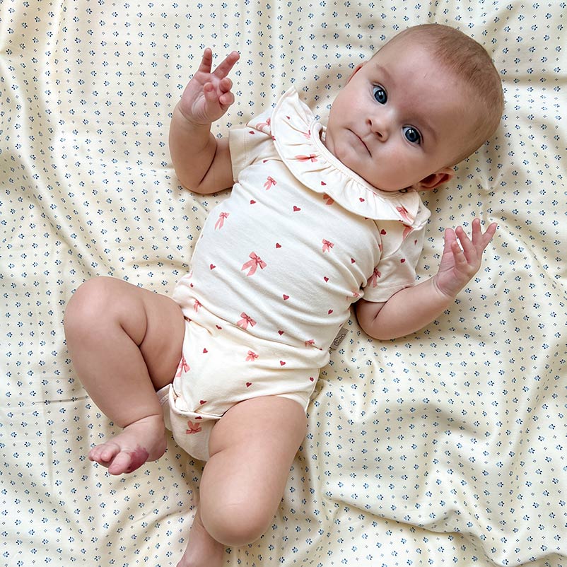 Базовая вещь, которая совсем не скучная. Принт с бантиками Olivia превращает простое боди в элемент продуманного гардероба. Мягкий органический хлопок не сковывает движения, кнопки удобно расположены для быстрой смены подгузника. Молочный оттенок легко комбинируется с другими вещами и не теряет вид после многочисленных стирок. Минимализм с характером — именно так выглядит скандинавский подход к детской одежде.