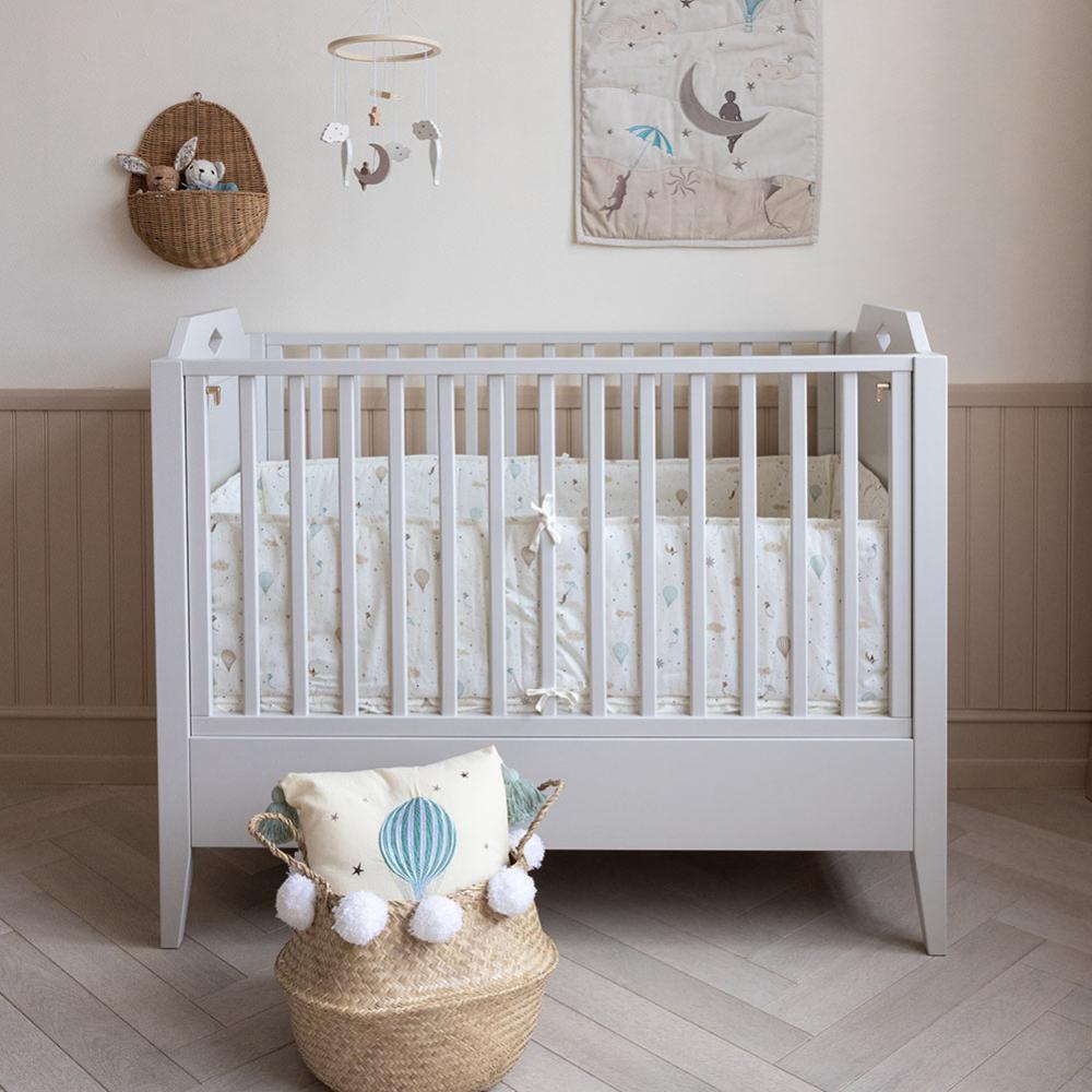 Мягкий бортик защищает малыша от ударов о прутья кроватки и создает уютное гнездышко для сна. Трехсантиметровая набивка из пеноматериала обеспечивает комфорт, а органический хлопок с принтом воздушных шаров успокаивает. Удобные завязки легко крепятся к кроватке. Бортик помогает создать безопасное и спокойное пространство, где ребенок чувствует себя защищенным.