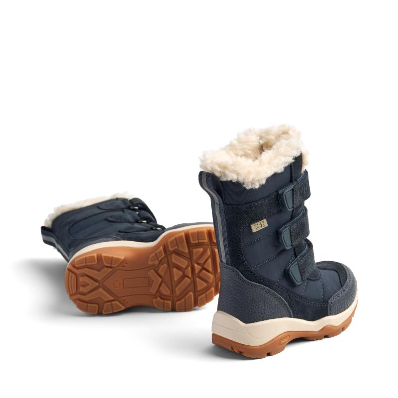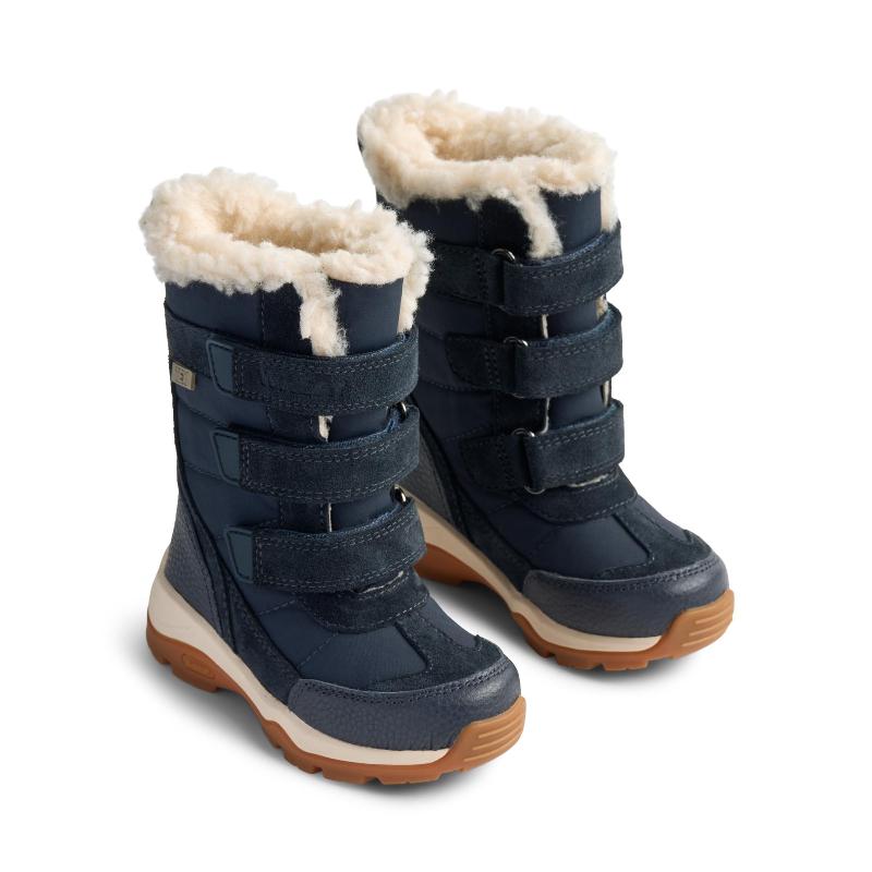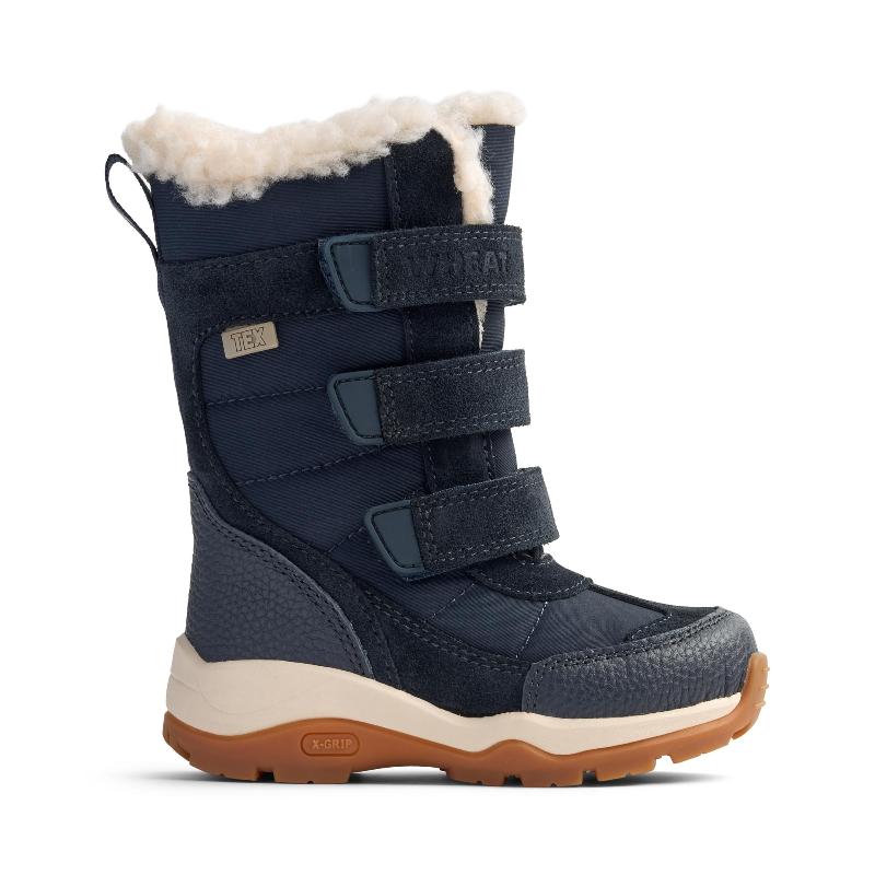 Wheat Airy Tex Navy — ботинки цвета ночного неба, которые будто созданы для первых шагов по снегу. Тёмно-синий оттенок добавляет глубины и спокойствия, а лёгкая форма не мешает двигаться. Они выглядят уверенно и просто, словно часть зимнего ритуала: надел — и готов встречать новый день с любопытством и улыбкой.