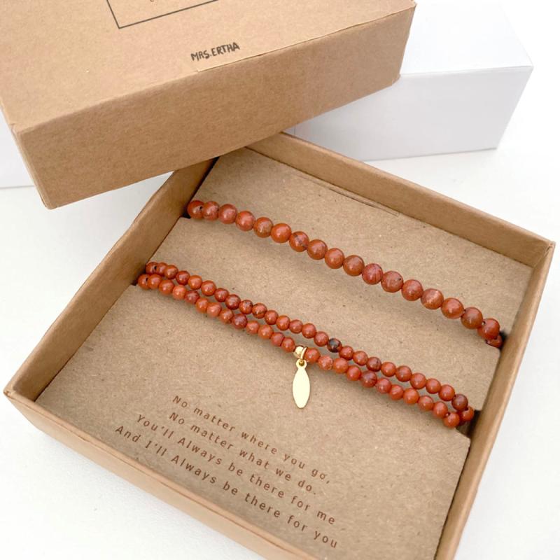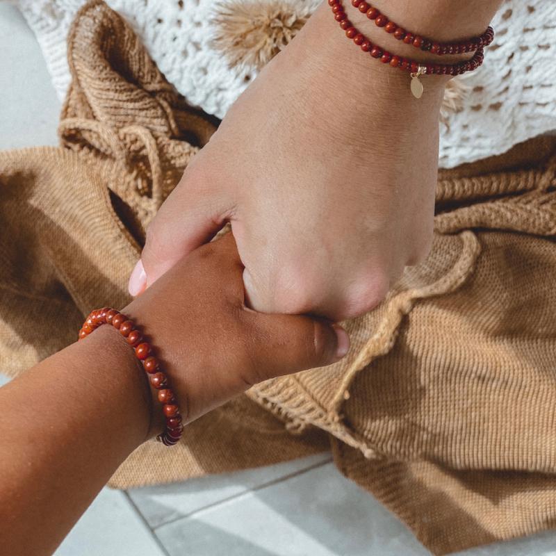Комплект парных браслетов из натуральной красной яшмы. Яшма – древний полудрагоценный камень насыщенного терракотово-красного цвета. Бусины тщательно отшлифованы, имеют приятную округлую форму. Эластичная основа легко растягивается, подходит разным размерам рук. Элементы из медицинского сплава безопасны для кожи, не темнеют со временем, не вызывают аллергии. Каждый камень уникален по оттенку и узору прожилок. Парные браслеты укрепляют эмоциональную связь. Красная яшма считается камнем энергии и защиты. Удобны для ежедневного ношения.