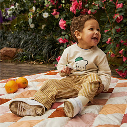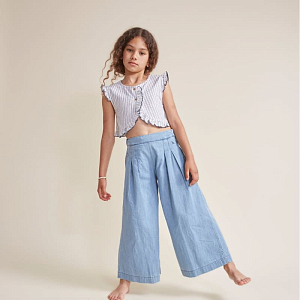 Легкие хлопковые брюки с белыми полосками подойдут для теплых дней. Натуральная ткань дышит и приятна телу, обеспечивая комфорт в течение всего дня. Свободный крой не стесняет движений, а эластичный пояс мягко фиксирует брюки на талии. Универсальный дизайн позволяет сочетать их с футболками, рубашками и свитерами, создавая стильные и удобные образы для прогулок, игр и повседневных дел.