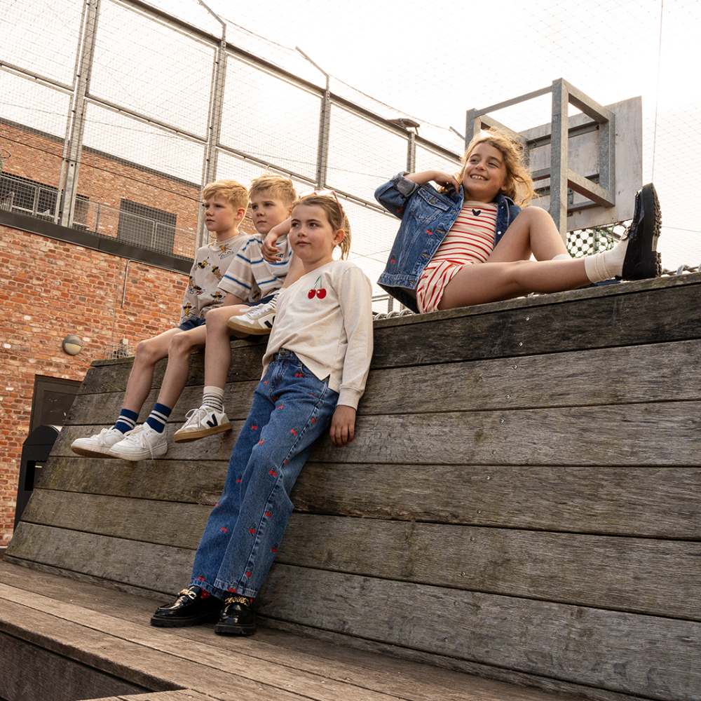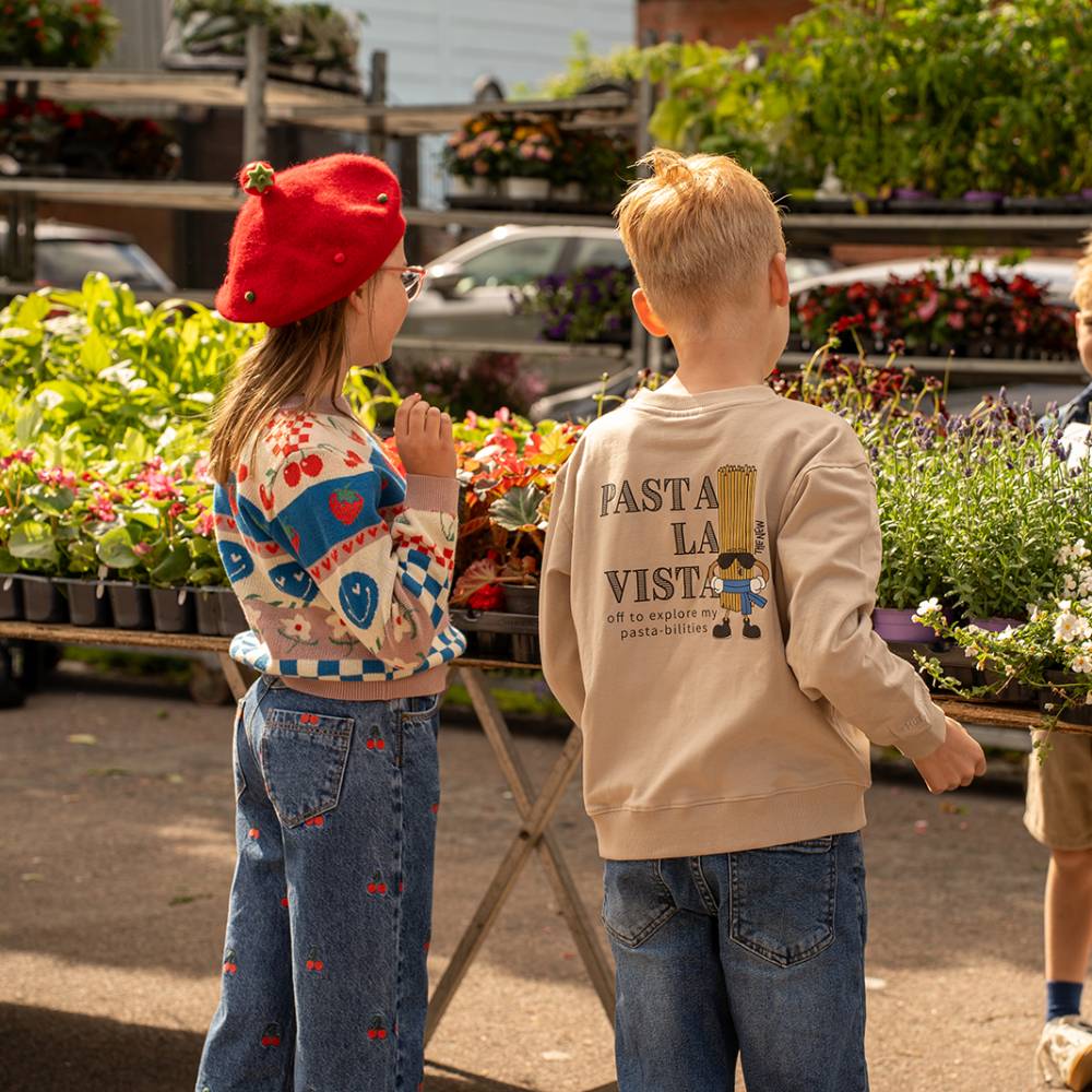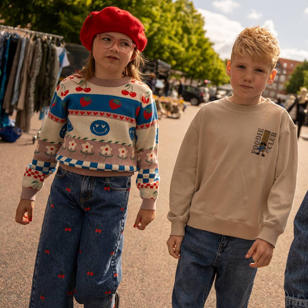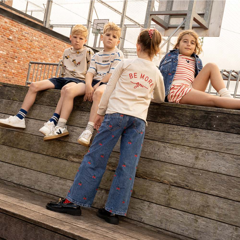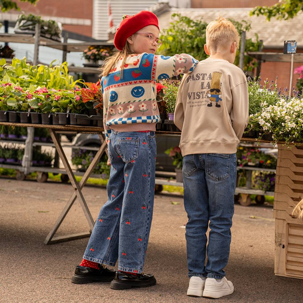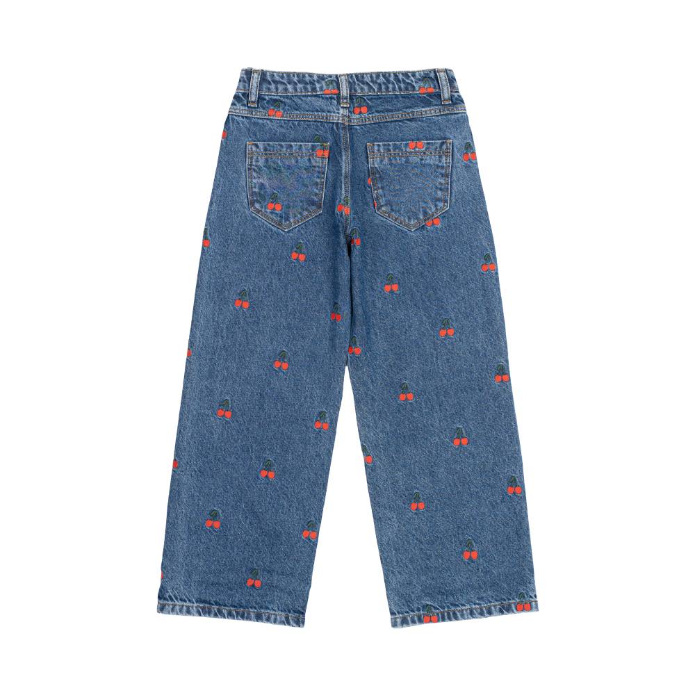 Эти стильные широкие джинсовые брюки с принтом в виде спелых вишен подойдут для активных и модных детей. Удобный крой и мягкая джинсовая ткань обеспечат комфорт на протяжении всего дня. Брюки легко комбинируются с различными топами, футболками и свитерами, создавая универсальные образы для прогулок и активных игр. Вишневые детали добавляют оригинальности, делая модель подходящей для создания стильных нарядов.
