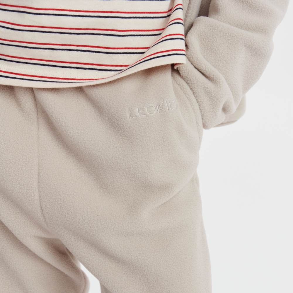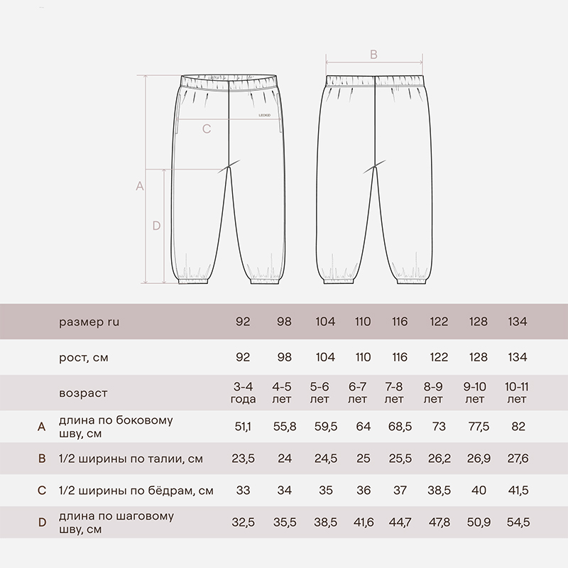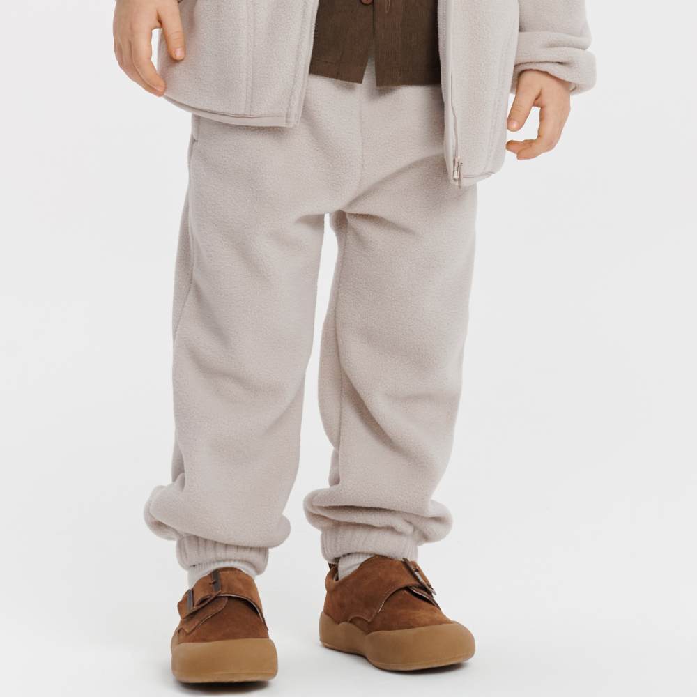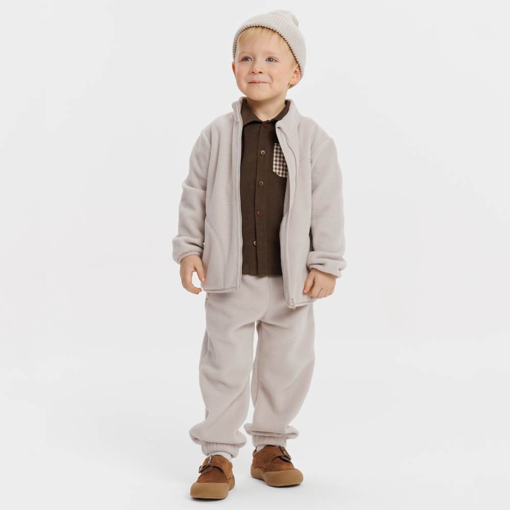 Мягкие трикотажные брюки идеально подходят для игр дома и прогулок. Лёгкая ткань согревает, не мешает движениям, а светлый оттенок делает образ свежим. В них удобно кататься на горках, бегать по двору и веселиться. Брюки тёплые и комфортные, подходящие для активных малышей.