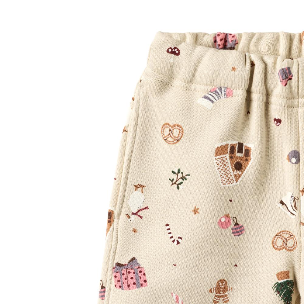 Кремовые брючки для малышей с едва уловимым праздничным узором — ёлочные шары и звёздочки словно парят на ткани. Мягкий хлопок, эластичный пояс без резинки и свободный крой делают их идеальными для ползания, ходьбы и игр. Легко комбинируются со свитшотами и кофточками. Комфорт, в котором хочется расти.