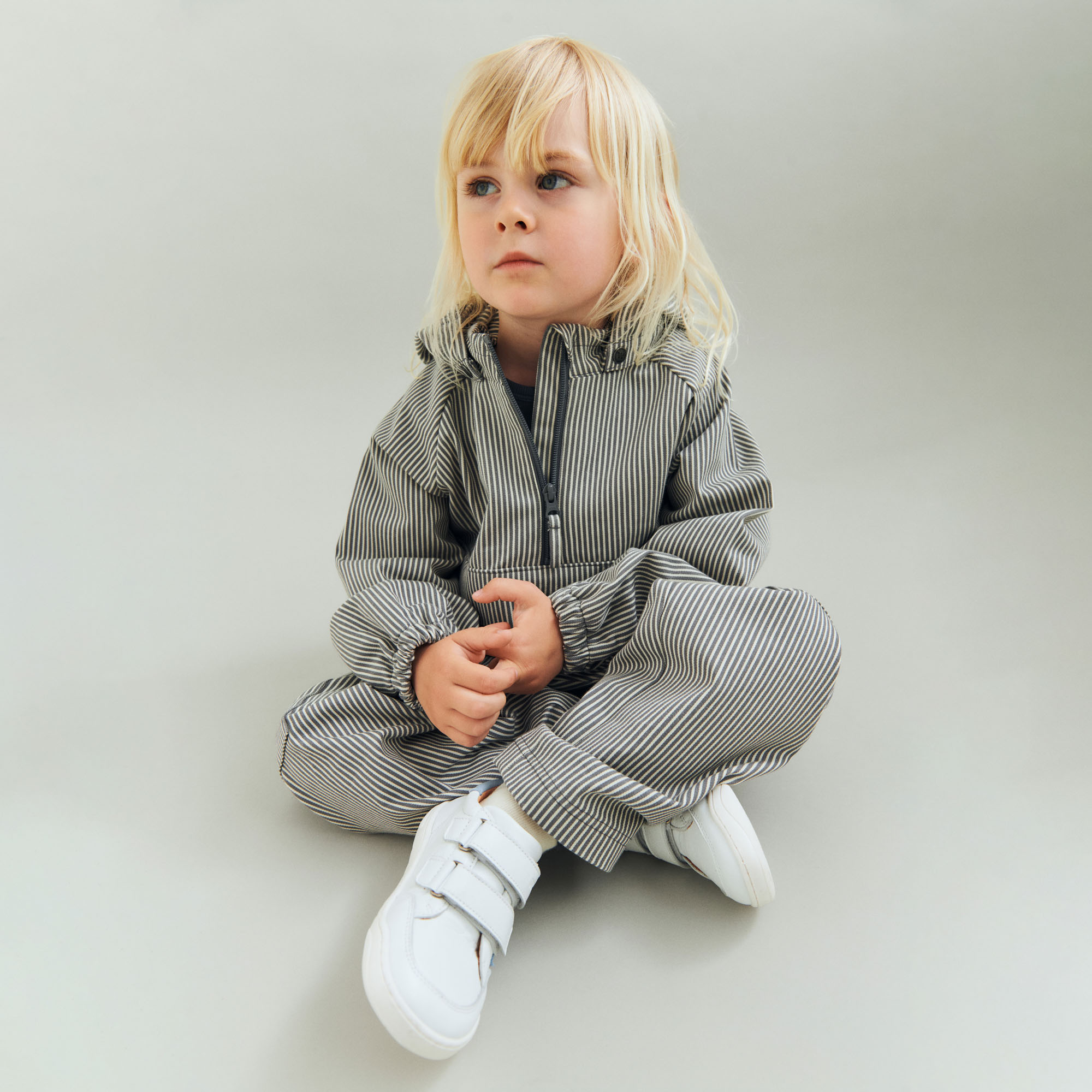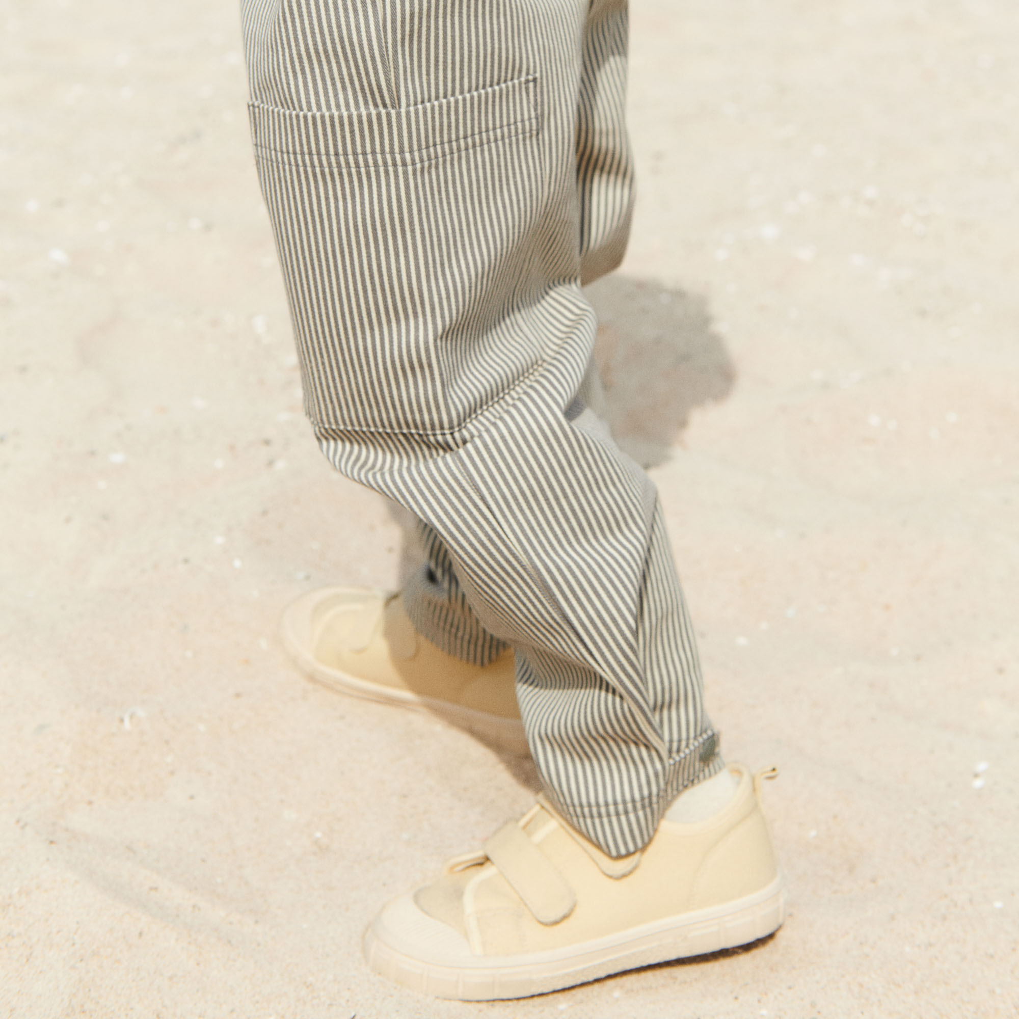 Серые брюки в полоску для повседневной носки. Мягкий материал комфортен для длительного ношения. Резинка на талии держит брюки, не давит. Дышащая ткань подходит для активных игр. Свободный крой позволяет свободно бегать и лазить. Носятся весной и летом в теплую погоду. Легко комбинируются с любой одеждой из гардероба. Нейтральный цвет подходит всем детям. Простой уход — стирка в машинке. Практичная базовая вещь в скандинавском стиле.