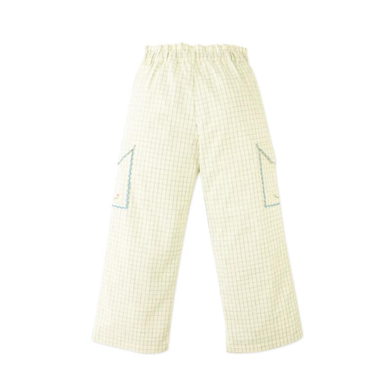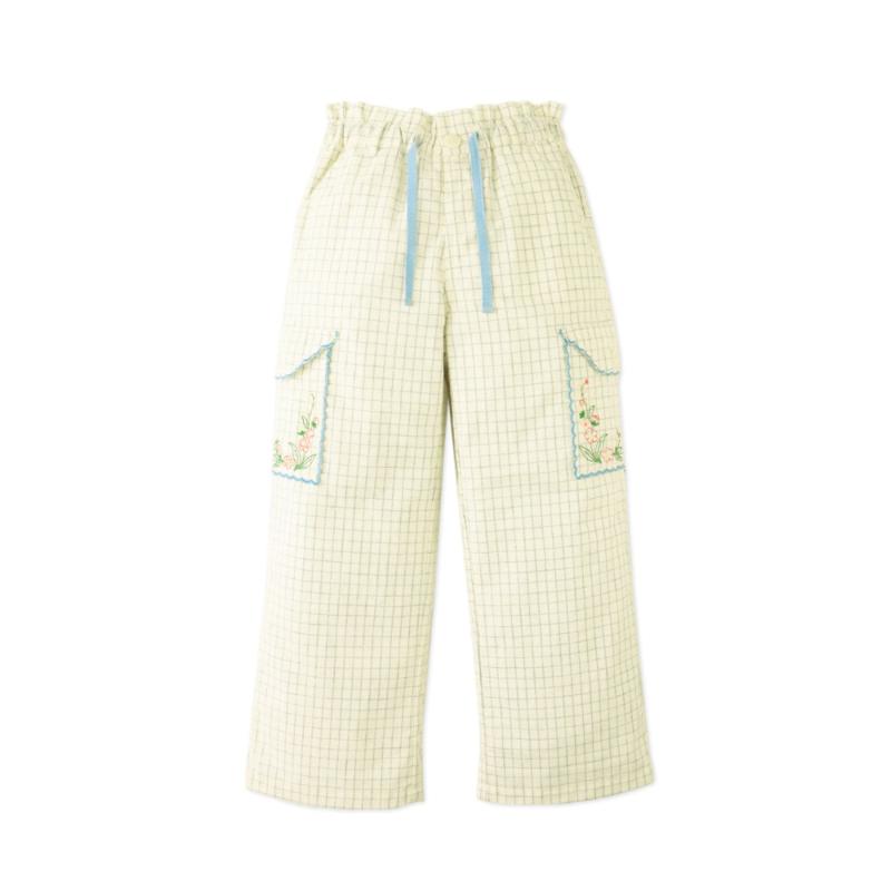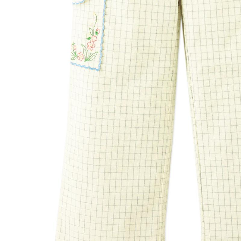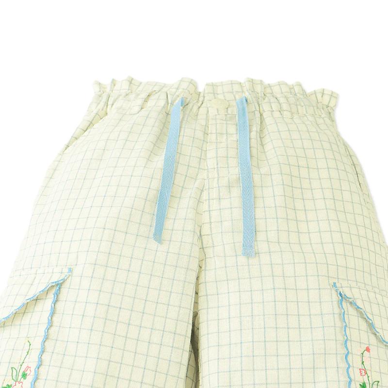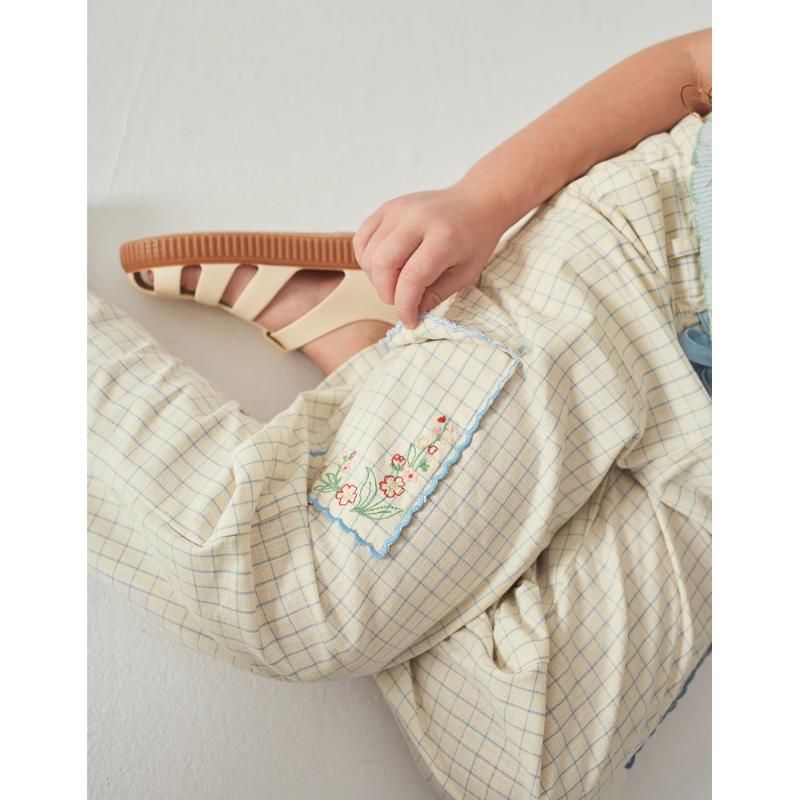 Прямые брюки в голубую клетку выглядят аккуратно и собранно, при этом остаются комфортными на каждый день. Лаконичный силуэт дополнен карманами с тонкой вышивкой, которая добавляет образу характер. Пояс удобно фиксируется, а свободная посадка позволяет двигаться без ограничений. Легко комбинируются с рубашками, топами и кардиганами.