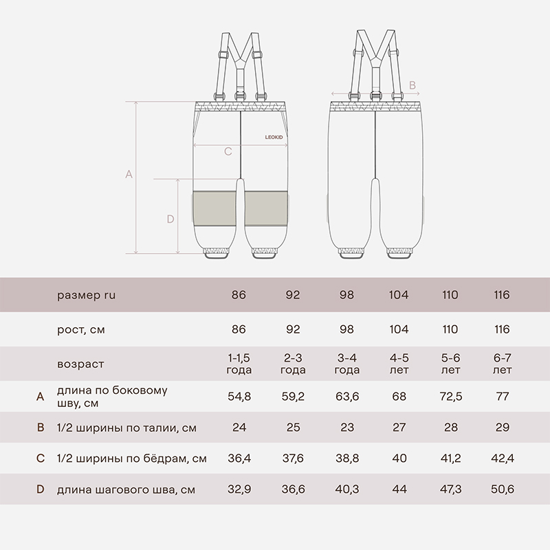 Стильные и практичные, они станут верным спутником в холодное время года. Нейтральный цвет делает их универсальными, а мягкая посадка обеспечивает свободу движений. В таких брюках можно и шуршать листвой, и просто играть в догонялки. Они дарят тепло и лёгкость, сохраняя радость каждой прогулки.
