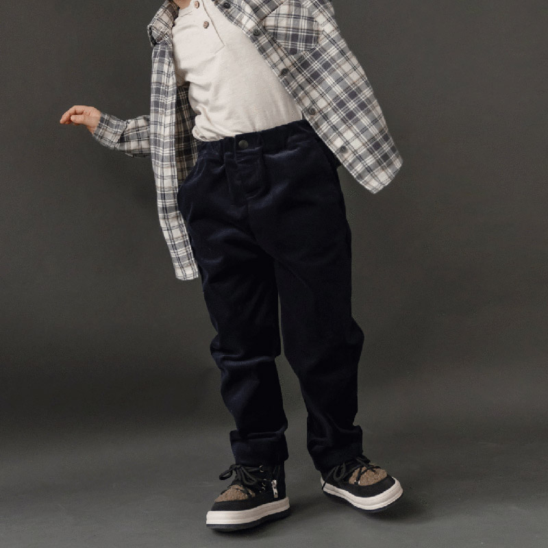 Глубокий синий цвет и вельвет с характерной текстурой делают эти брюки тёплыми, удобными и стильными. Модель дополнена накладными карманами, что придаёт ей лёгкий налёт практичного ретро и делает вещь ещё более функциональной. Широкая резинка на поясе обеспечивает надёжную посадку и комфорт в течение всего дня. Эти брюки легко сочетаются с рубашками, свитшотами и куртками, становясь основой повседневного детского гардероба.