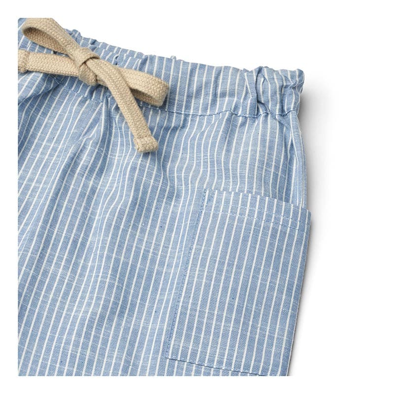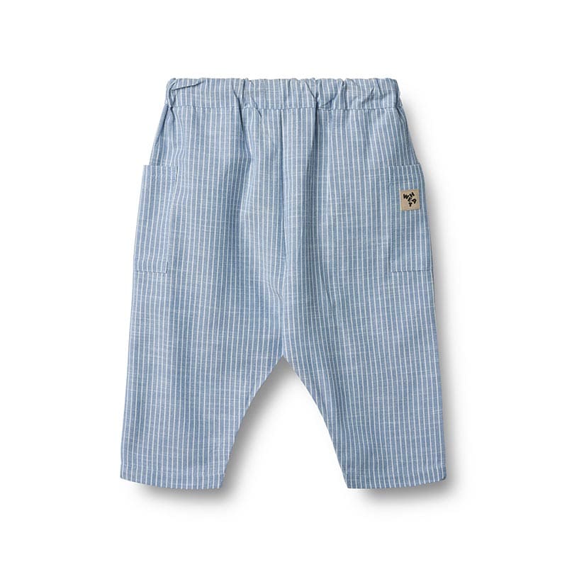Лёгкие брюки в тонкую полоску создают ощущение воздушности и аккуратности. Они отлично сидят, не стесняют движений и позволяют ребёнку быть активным весь день. Благодаря мягкой ткани и эластичному поясу брюки удобно надевать, а стильная полоска добавляет образу нотку классики. Такая модель хорошо сочетается как с простыми футболками, так и с рубашками — универсальный вариант для лета, когда важны и комфорт, и опрятный внешний вид.