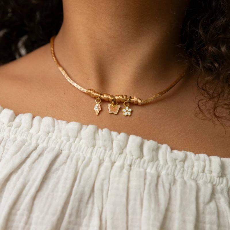 Три узла на персиковой хлопковой нити ждут своих шармов-героев. 100% натуральный хлопок нежен к коже и выдерживает активный ритм жизни. Длина регулируется под любой образ и настроение. Купите отдельно любимые подвески и меняйте их хоть каждый день. Удобная застёжка легко открывается и закрывается даже детскими пальчиками. Тёплый персиковый оттенок сочетается с любыми шармами, ожерелье понравится и маме, и дочке.