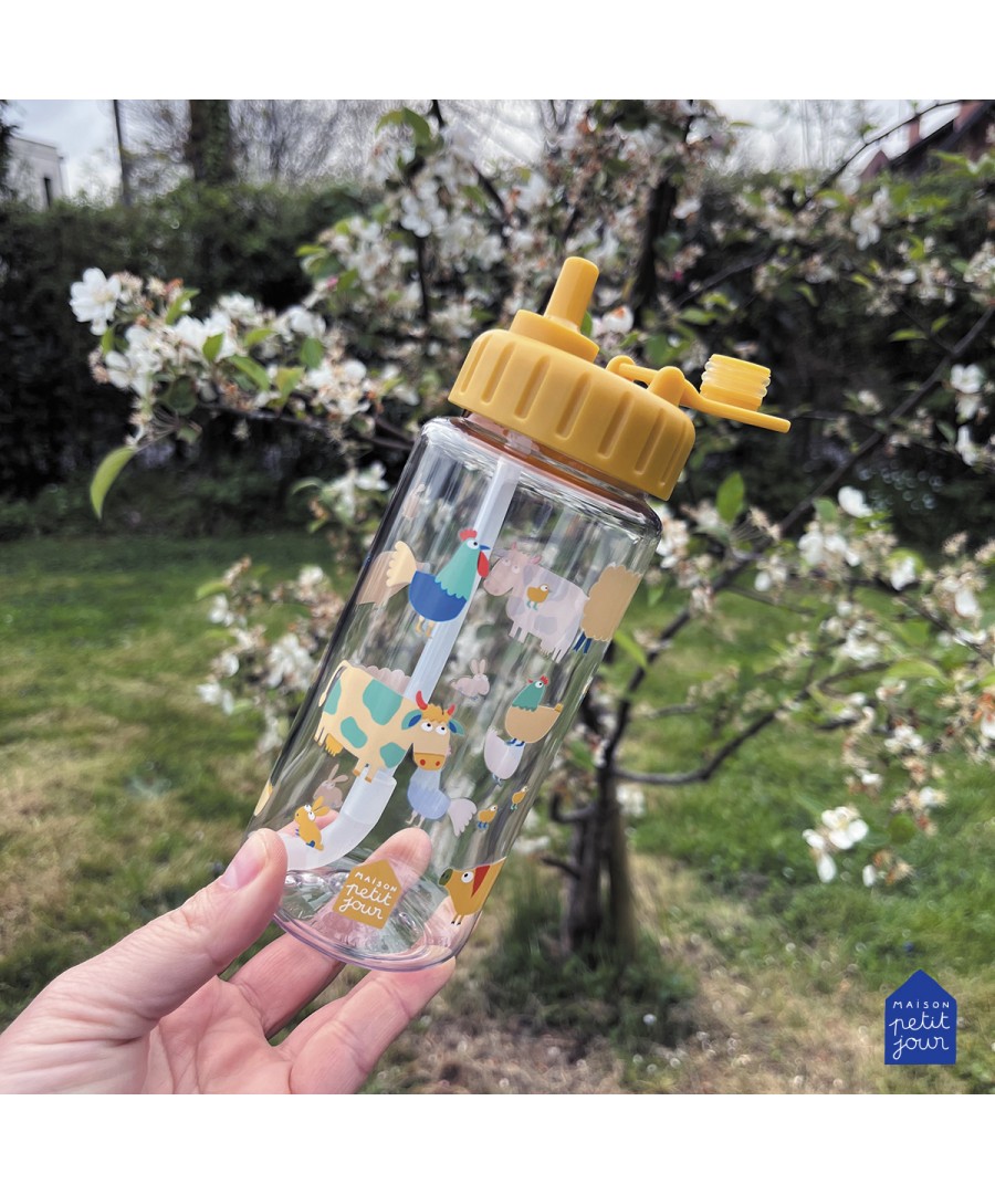 Милая желтая бутылка с рисунками животных с фермы. Объем 350 мл помещается в любой детский рюкзак. Крышка с трубкой — ребенок пьет сам, не проливая. Закручивается плотно, поэтому вода точно не вытечет. Широкое горлышко облегчает мытье и наполнение бутылки. Материал легкий и крепкий, не боится падений. Яркий цвет легко найти среди других вещей. Бутылка подходит для холодных напитков — воды, сока, чая. Удобно брать на прогулку, в школу или на занятия.