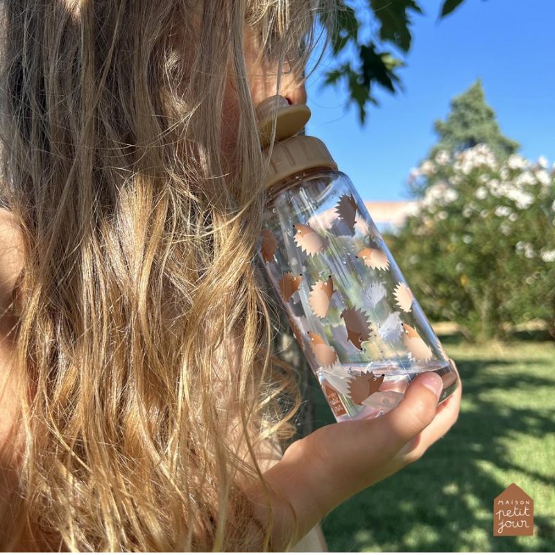 Бутылка карамельного цвета с рисунками ежей и удобной трубкой для питья. Объем 350 мл подходит для школы, прогулки или занятий. Крышка плотно закручивается, напиток не прольется в сумке. Ребенок может пить на ходу через трубку, не останавливаясь. Горлышко широкое — легко налить воду и помыть бутылку внутри. Материал легкий и прочный, не боится падений на пол. Спокойный цвет не маркий. Бутылка подходит для воды, сока, чая. Удобно носить каждый день.