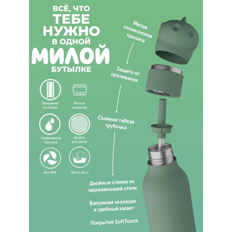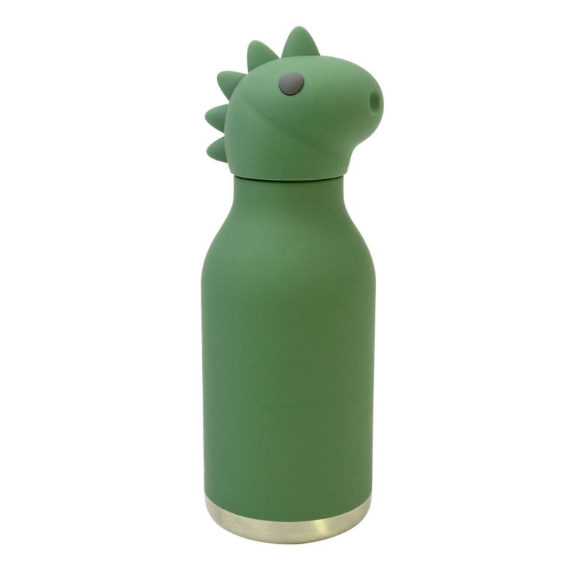 Термос с зелёным динозавром на крышке — объёмная силиконовая фигурка делает обычную бутылку частью приключения. Двустенная конструкция сохраняет температуру напитков, мягкий корпус удобно держать, соломинка позволяет пить на ходу. Идеально для детей и взрослых, которые не утратили способность удивляться. Коллекционная серия с десятками персонажей на выбор.