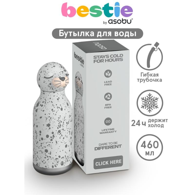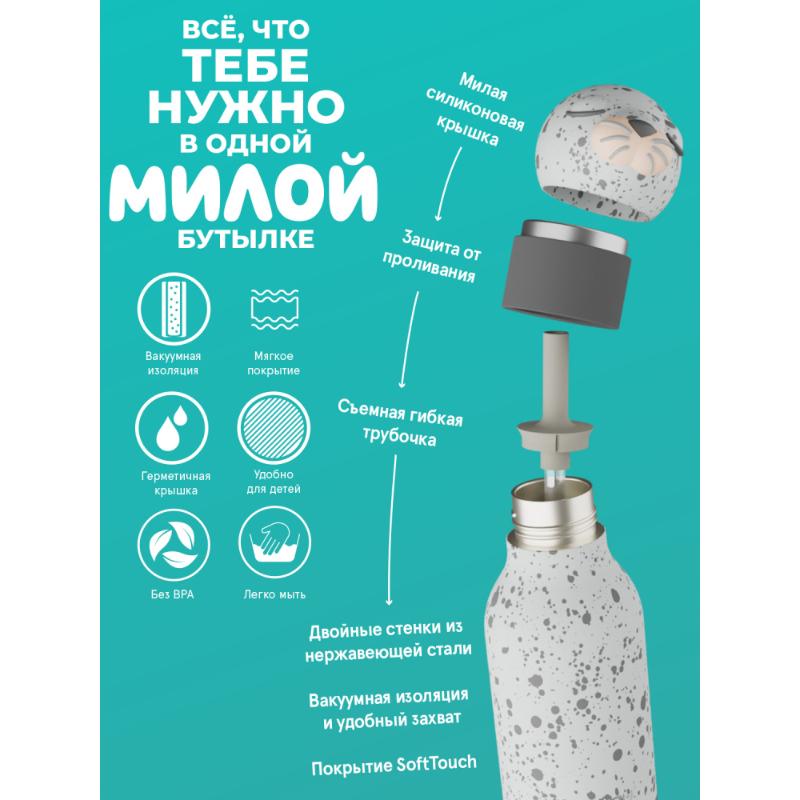 Серый термос с тюленем на крышке — объёмная силиконовая фигурка с круглыми глазами делает питьё милее. Двустенная конструкция держит температуру напитков, мягкое покрытие удобно в использовании, соломинка в комплекте. Арктический житель для тёплых широт. Коллекционная серия для тех, кто не боится выделяться добротой в мире угловатых термосов.