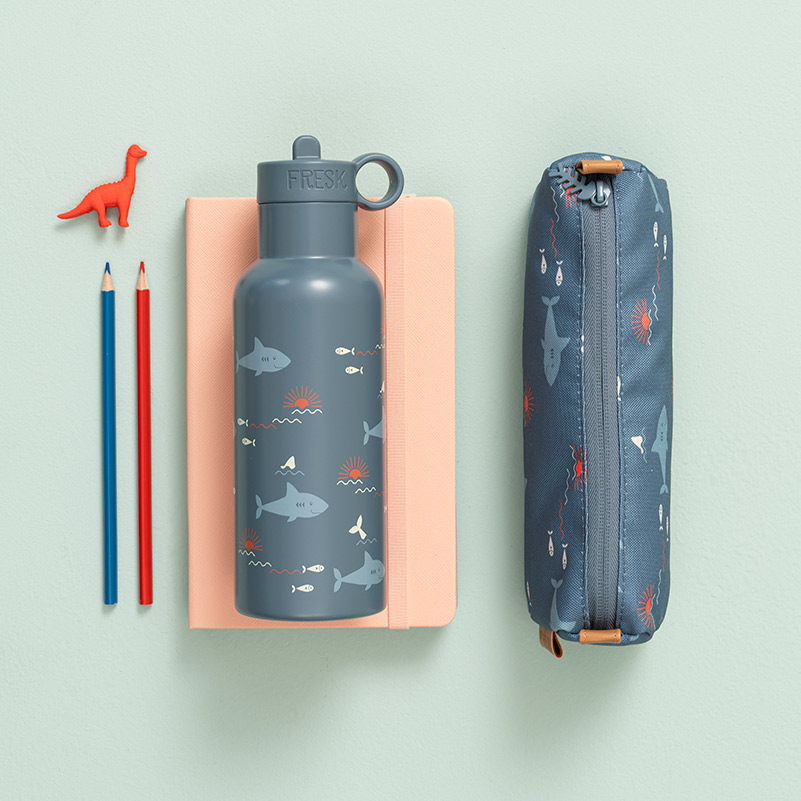 Вместительный термос с дружелюбными акулами для активных школьников. Объём 500 мл обеспечивает достаточным количеством жидкости на целый день занятий или тренировки. Вакуумная изоляция работает до восьми часов — напитки остаются в нужной температуре от утра до вечера. Голубой цвет практичен и нравится детям. Широкое горлышко облегчает наполнение и добавление льда. Герметичная крышка не протекает даже при активных движениях. Прочная нержавеющая сталь выдерживает школьные будни.