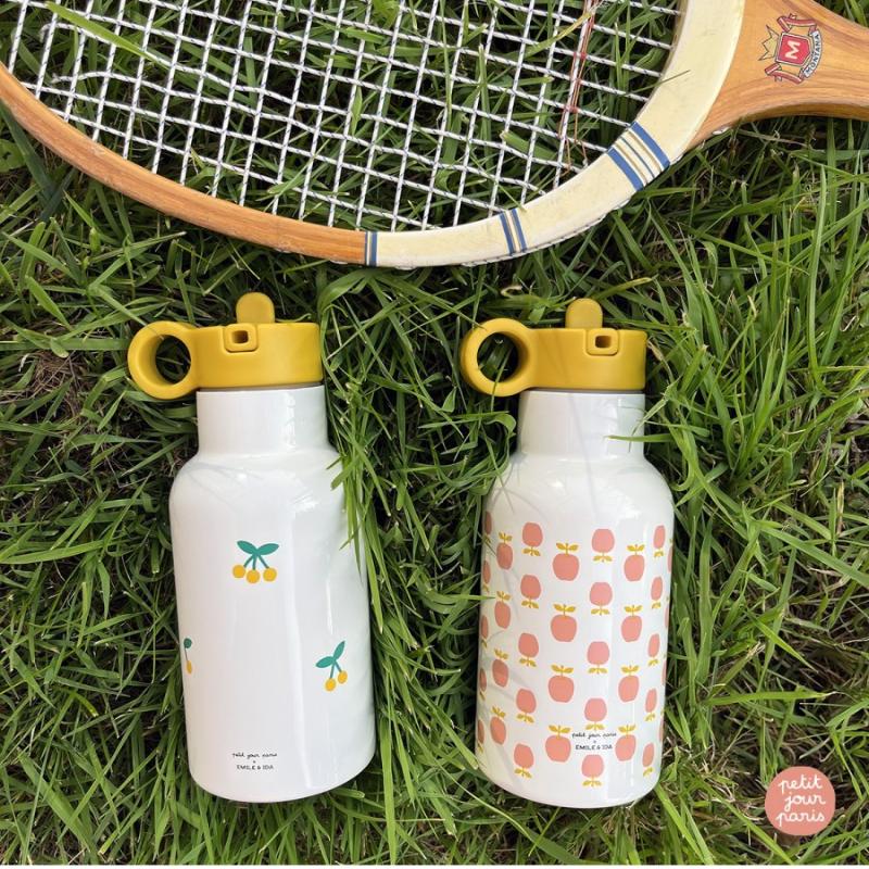 Термос из металла с двойными стенками держит холод до 10 часов, а тепло до 5 часов. Крышка с трубкой позволяет пить на ходу, не проливая. Бежевый цвет с рисунками яблок из коллекции Emile & Ida выглядит нежно и стильно. Горлышко широкое, легко мыть внутри. Материал прочный, выдерживает падения. Удобно носить в рюкзаке каждый день. Подходит для воды, сока, чая или других напитков. Яблоки на термосе добавляют летнее настроение даже в холодную погоду.