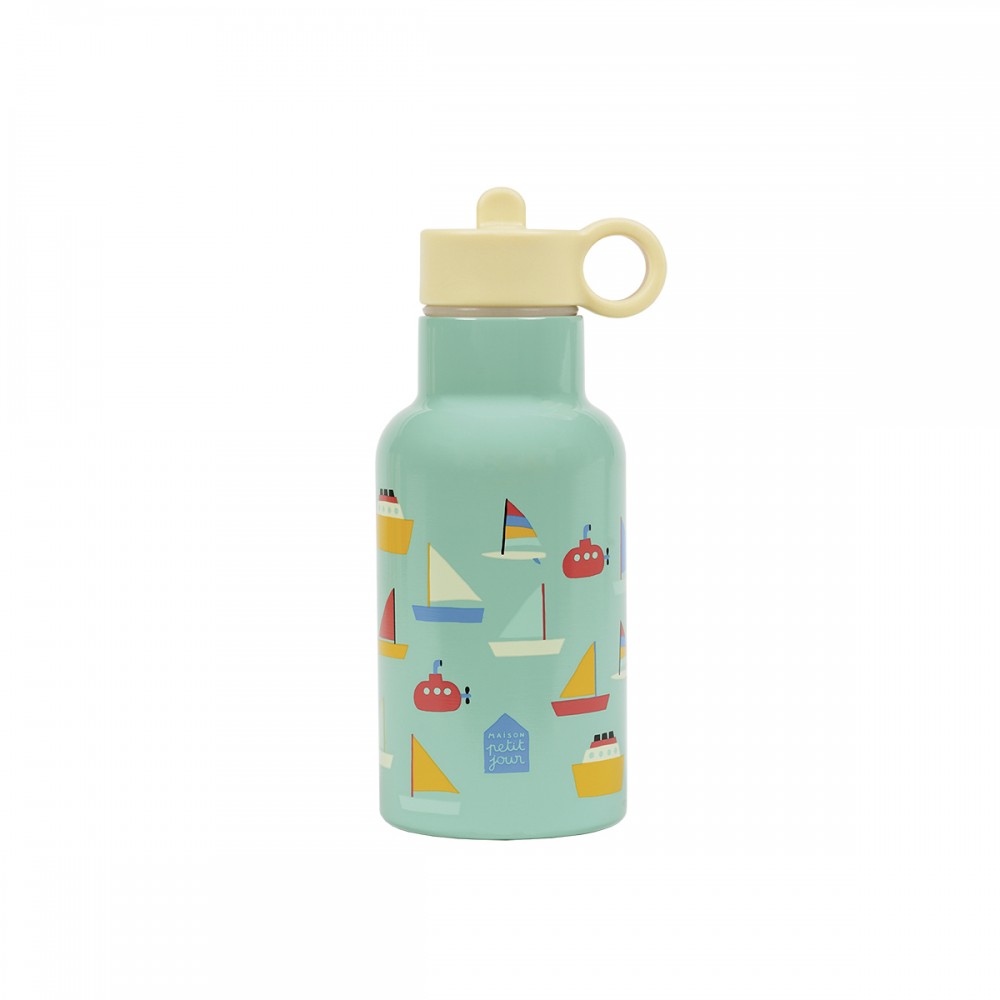 Термос из металла с двойными стенками держит холод до 10 часов, а тепло до 5 часов. Напитки останутся нужной температуры на всю прогулку или учебный день. Крышка с трубкой позволяет пить на ходу, не проливая. Мятный цвет с рисунками корабликов смотрится свежо и летне. Горлышко широкое, легко наливать воду и мыть внутри. Материал прочный, выдерживает падения. Удобно носить в рюкзаке. Подходит для воды, сока, чая или других напитков.