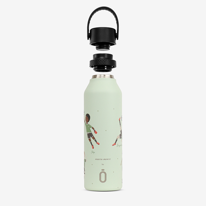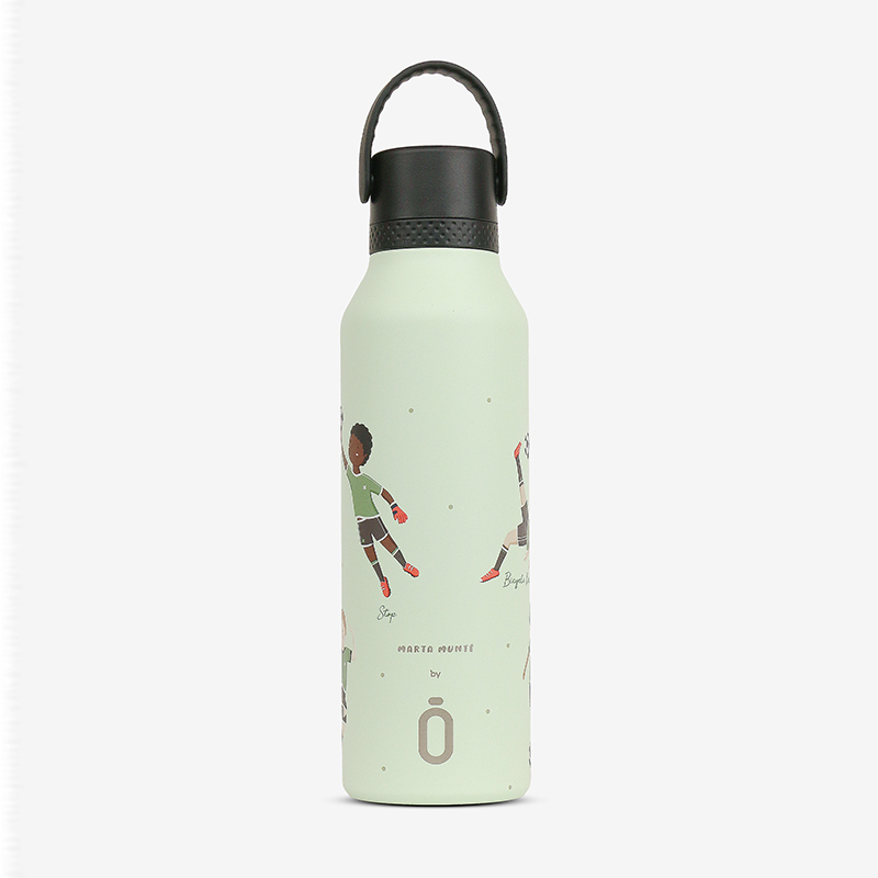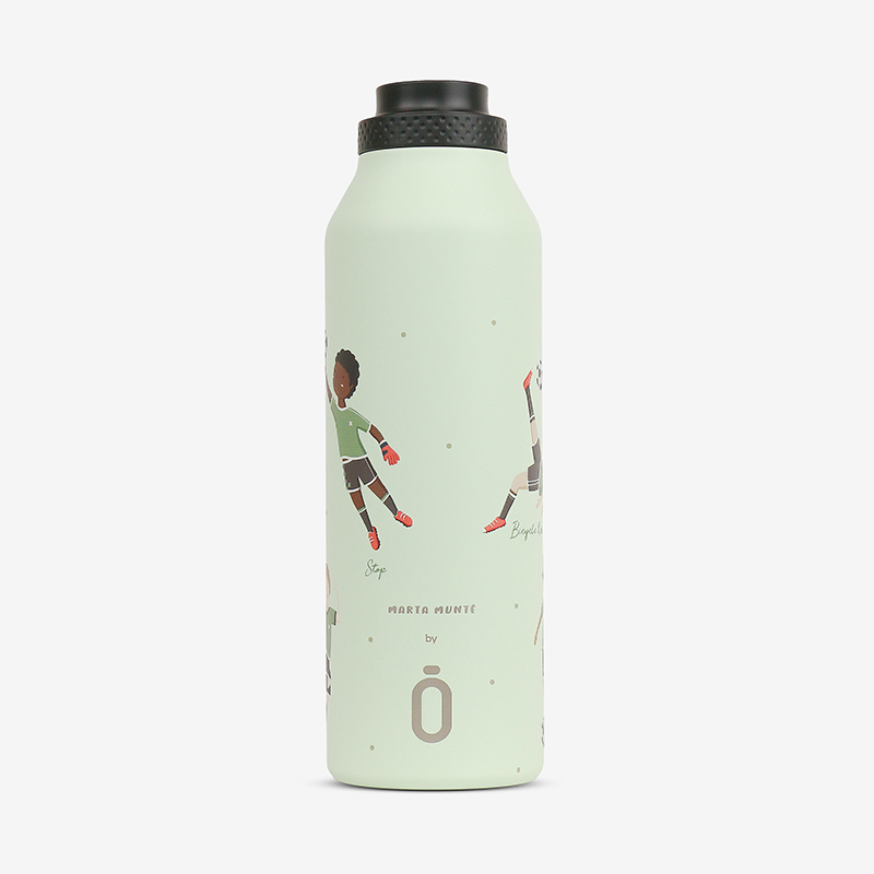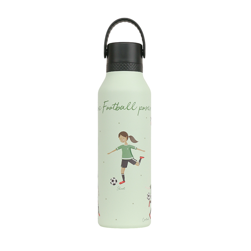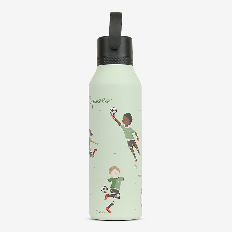 Футбольные мячи и кроссовки создают динамичный рисунок для настоящих чемпионов. Большой объем незаменим на тренировках и матчах — хватит надолго утолить жажду. Конденсат не образуется снаружи, руки остаются сухими во время игры. Ударопрочный корпус готов к самым активным играм на поле и за его пределами.