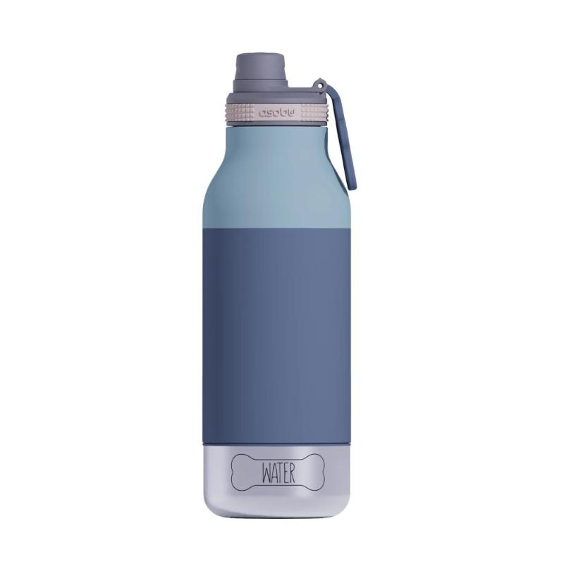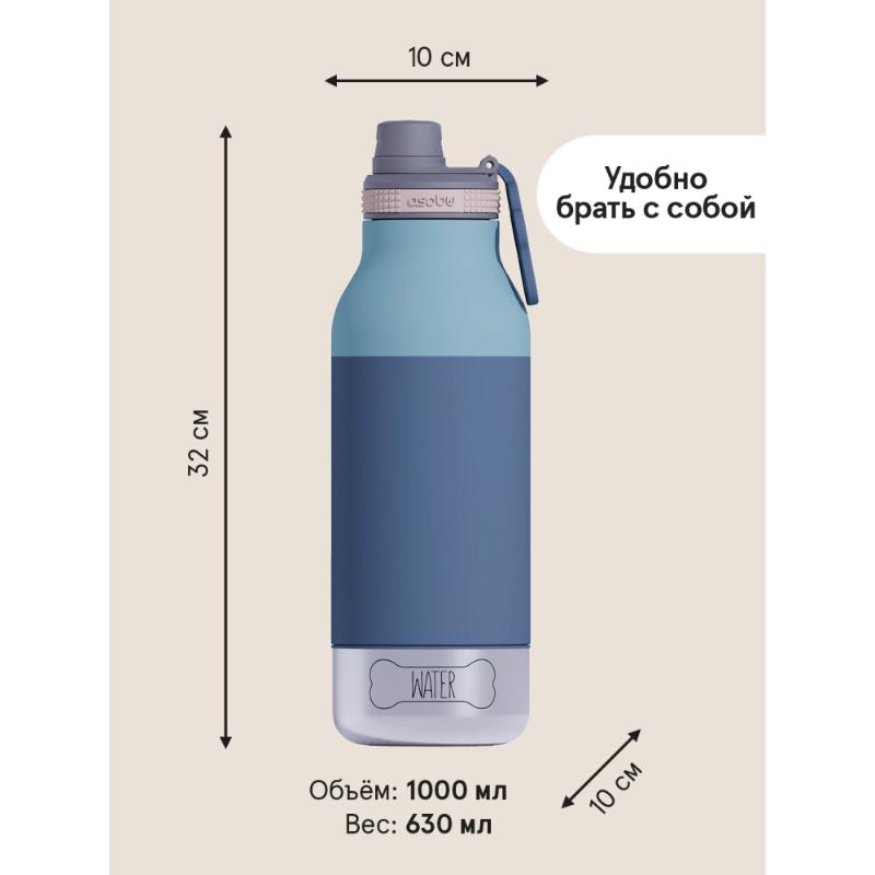 Термос с двумя съёмными мисками для питомца — одна для воды, вторая для корма. Откручивается дно, достаёшь миски, кормишь собаку на прогулке. Вакуумная изоляция держит воду свежей, ручка с отпечатком лапы делает переноску удобной, голубой цвет не маркий. Для владельцев собак, которые не забывают о питомце даже в долгих прогулках. Миски компактно помещаются внутри бутылки.
