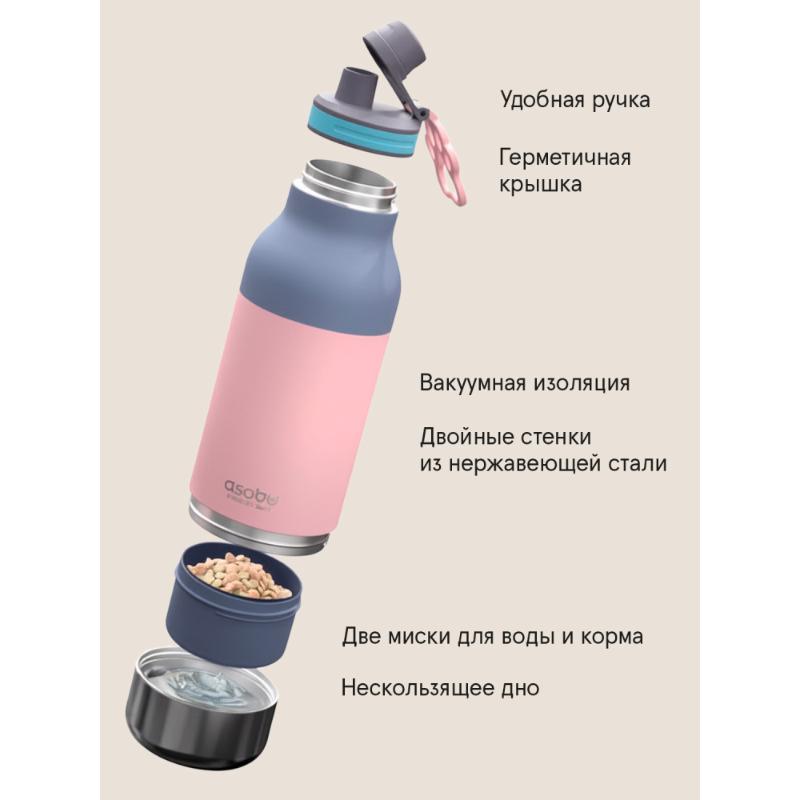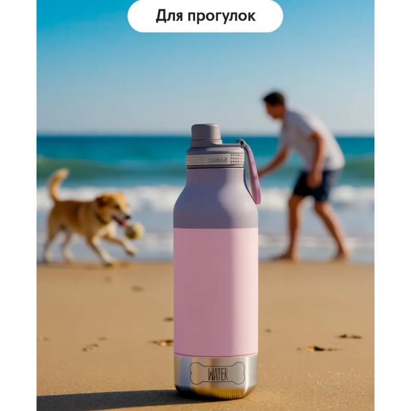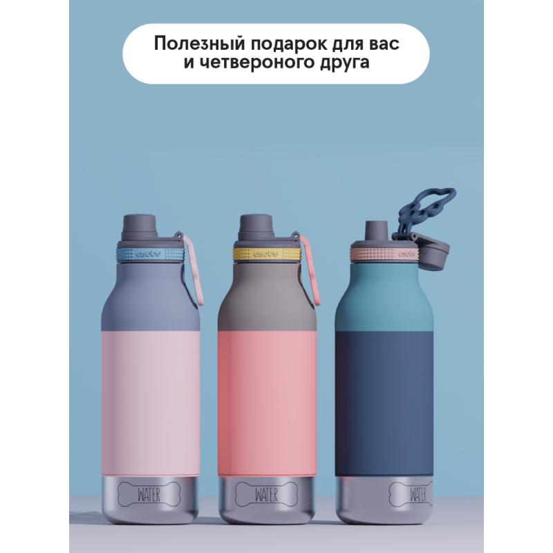 Термос с двумя мисками для питомца в откручивающемся дне — одна для воды, другая для еды. Двустенная конструкция сохраняет свежесть напитков, ручка с принтом лапы удобна для переноски, розовый цвет выглядит жизнерадостно. Для хозяев собак, которые берут питомца везде. Миски легко достаются из нижней части бутылки и так же легко убираются обратно после использования.