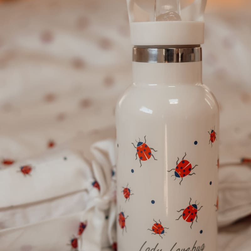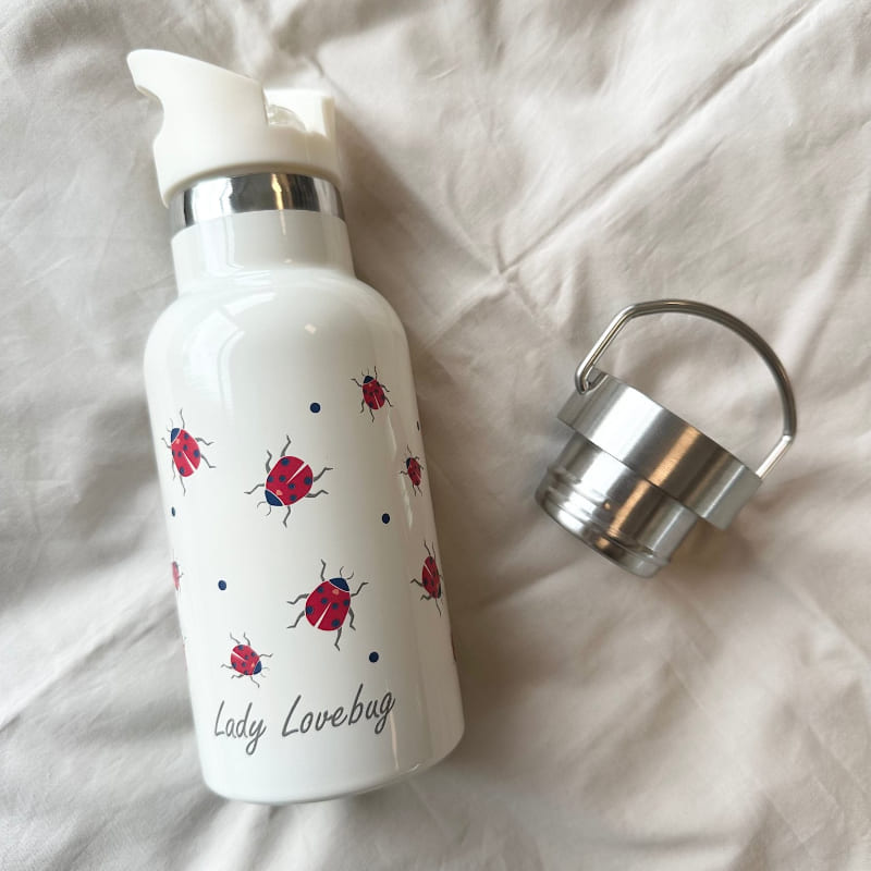 Эта бутылка-термос в нежных молочных оттенках украшена изображением божьей коровки и создана для сохранения свежести напитков. Она надежно удерживает температуру благодаря двойным стенкам и герметичной крышке, что удобно для длительных прогулок и путешествий. Удобный клапан позволяет легко пить без проливаний, а форма бутылки комфортно ложится в маленькую руку. Объем в 350 мл идеально подходит для детских нужд и легко помещается в рюкзак.