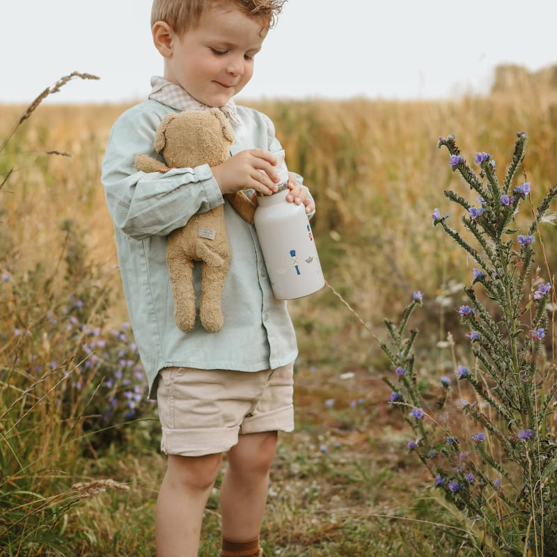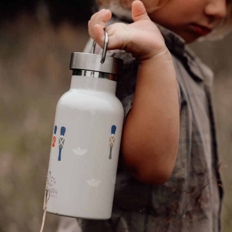 Стильная бутылка-термос выполнена в светло-сером цвете с оригинальным принтом в виде персонажа. Благодаря двойным стенкам она отлично сохраняет температуру напитков — горячих или холодных — на протяжении долгого времени. Удобный клапан обеспечивает простой доступ к содержимому без проливаний, а эргономичная форма позволяет комфортно держать бутылку в руке. Компактный объем 350 мл идеально подходит для детей, позволяя брать любимые напитки на прогулку или в школу.