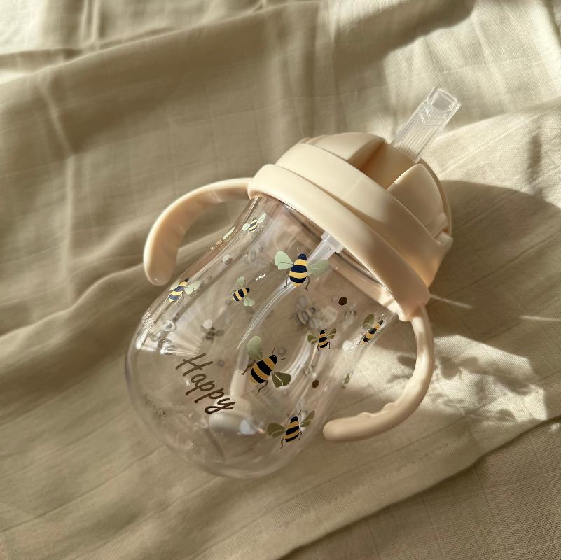 Бутылочка с мягкой трубочкой внутри. Крышка плотно закрывается, защищая от протечек. Материал безопасный, не содержит BPA и фталатов. Трубочка помогает малышам пить самостоятельно, не проливая на себя. Пчёлки на корпусе выглядят мило. Объём небольшой, как раз для короткой прогулки или похода в гости. Легко моется, быстро сохнет.