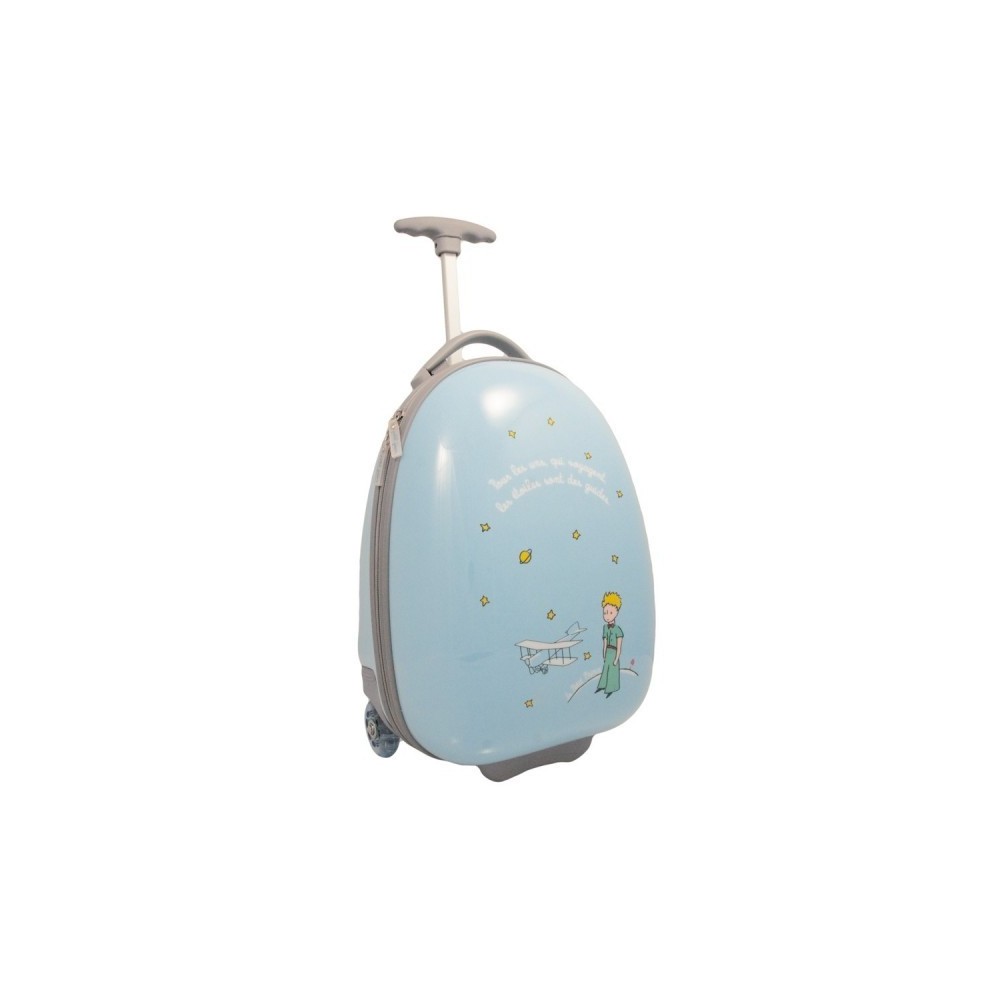 Чемодан с жестким корпусом и иллюстрациями Маленького принца для первых путешествий. Колеса резиновые, широко расставлены для устойчивости. Выдвижная ручка с кнопкой — ребенок легко везет чемодан сам. Внутри резинки для фиксации вещей и большой карман. Голубой корпус с авторскими рисунками Экзюпери выглядит нарядно. Чемодан прочный, защищает содержимое от ударов. Подходит для поездок к бабушке, на море или в другой город. Протирается влажной губкой, стирать нельзя.