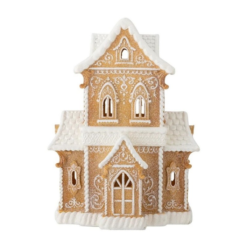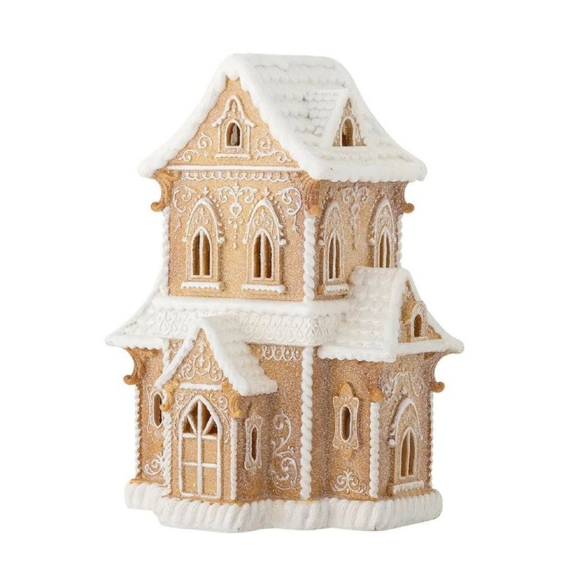 Домик из керамики выполнен в мягком карамельном тоне и дополнен внутренней подсветкой, создающей спокойное рассеянное сияние. Он хорошо подходит для зимних композиций или просто как небольшая деталь, которая добавляет интерьеру уютный ритм. Модель выглядит аккуратно и не перегружает пространство.
