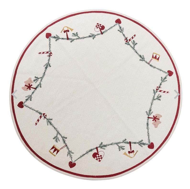 Круглый коврик Yule диаметром 110 см с красными и молочными акцентами — текстильный элемент, который собирает пространство. Рождественские мотивы делают его сезонным, но сдержанная цветовая гамма позволяет использовать дольше. Можно положить под ёлку, у камина, в прихожей или использовать как покрывало для пикника. Материал приятный, рисунок симметричный, размер достаточный для того, чтобы создать акцент в комнате.
