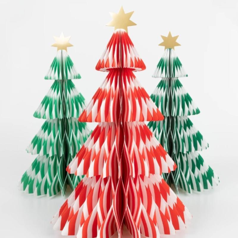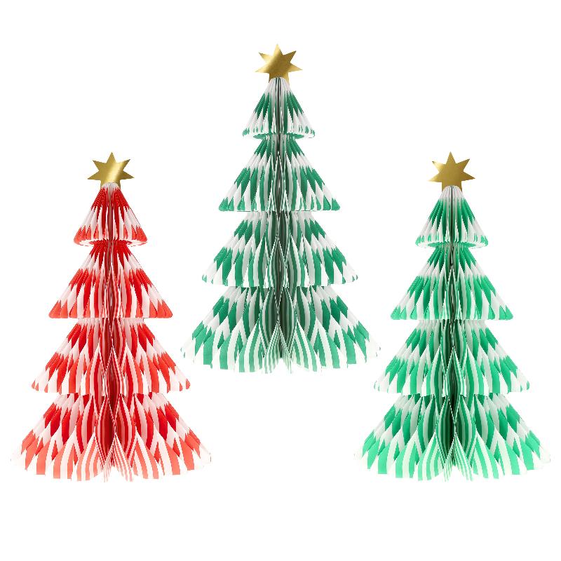 Лес вырос прямо на столе! Три объёмные ёлочки в стильную полоску создают праздничную композицию. Лёгкая сборка превращает плоские заготовки в трёхмерный декор. Современный дизайн с графичным узором освежает традиционную рождественскую тему. Идеальны для украшения стола, полок или создания праздничных инсталляций. Компактное хранение и многоразовое использование делают их практичным выбором. Пусть стильный лес наполняет дом праздничным духом!
