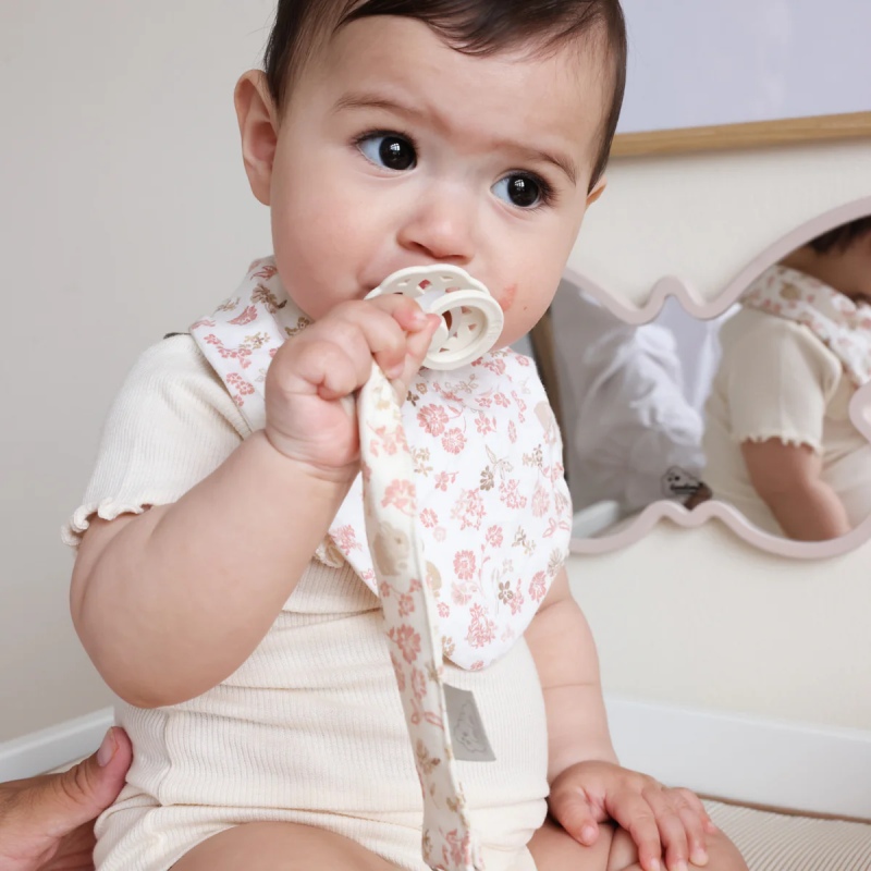 Кремовый держатель для пустышки серии Augusta — это сочетание лаконичного дизайна и удобства использования. Он надежно фиксирует пустышку на одежде ребенка, не давая ей упасть и загрязниться. Материалы изготовления мягкие, безопасные и гипоаллергенные, что особенно важно для малышей с чувствительной кожей. Держатель помогает родителям сохранить пустышку под рукой, а нежный цвет и стильный вид делают его отличным дополнением к любому детскому наряду.