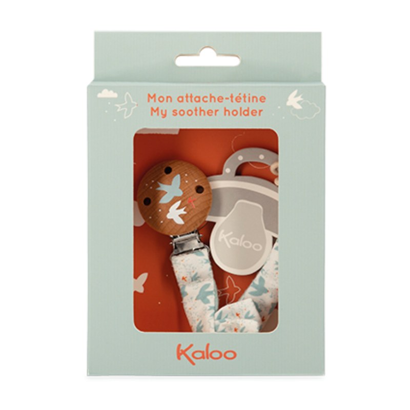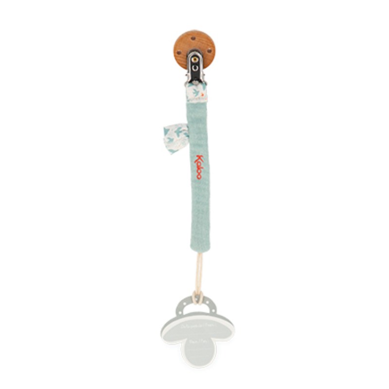 Изысканный держатель для пустышки из коллекции K'doux длиной 16,5 см в нежных голубых тонах. Выполнен из двух материалов: мягкий хлопковый муслин с вышитым логотипом Kaloo на одной стороне и очаровательная ткань с утонченным принтом на другой. Деревянный зажим изготовлен из экологичной древесины FSC, украшен принтом, который дополняет текстильный узор. Чтобы использовать, проденьте шнур через пустышку и прикрепите зажим к одежде — теперь пустышка всегда рядом с малышом. Разнообразие текстур стимулирует сенсорное восприятие и дарит успокоение. Представлен в прозрачной подарочной коробке, которую можно персонализировать сообщением. Прекрасный подарок на рождение или крестины.