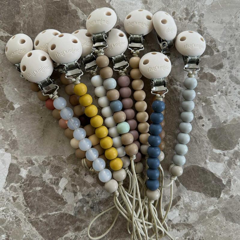 Держатель для соски в теплом охровом оттенке из нетоксичных силиконовых бусин. Теплый земляной цвет выделяется среди обычных пастельных вариантов и хорошо смотрится с одеждой в натуральных тонах. Бусины удобно держать в руках и жевать — особенно когда режутся зубы. Клипса крепится к одежде за секунду и держится надежно. Легко моется.