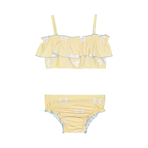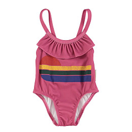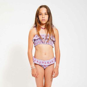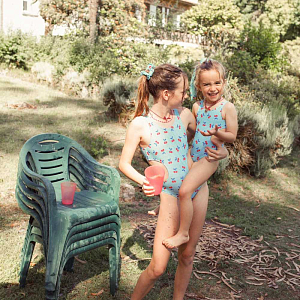 Купальник Konges Slojd точно понравится вашей малышке, ведь он не только стильный, но еще и очень удобный. В нем кроха может провести на пляже или в бассейне хоть целый день. Сшитый их качественного переработанного полиэстера с добавлением эластана, он быстро сохнет и не вызывает раздражений. Прочная ткань хорошо тянется, что обеспечивает идеальную посадку на любую фигуру. Пышные оборки на талии и трусиках делают образ романтичным, а яркий розово-голубой цветочный принт всегда поднимает настроение.
