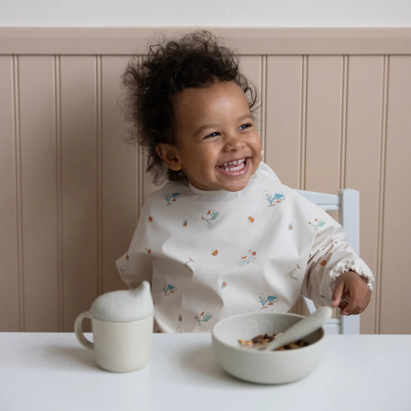 Дополнительная информация: полностью закрывающий нагрудник с длинными рукавами и практичным карманом. Возраст: 1-3 года. OEKO-TEX® Standard 100.